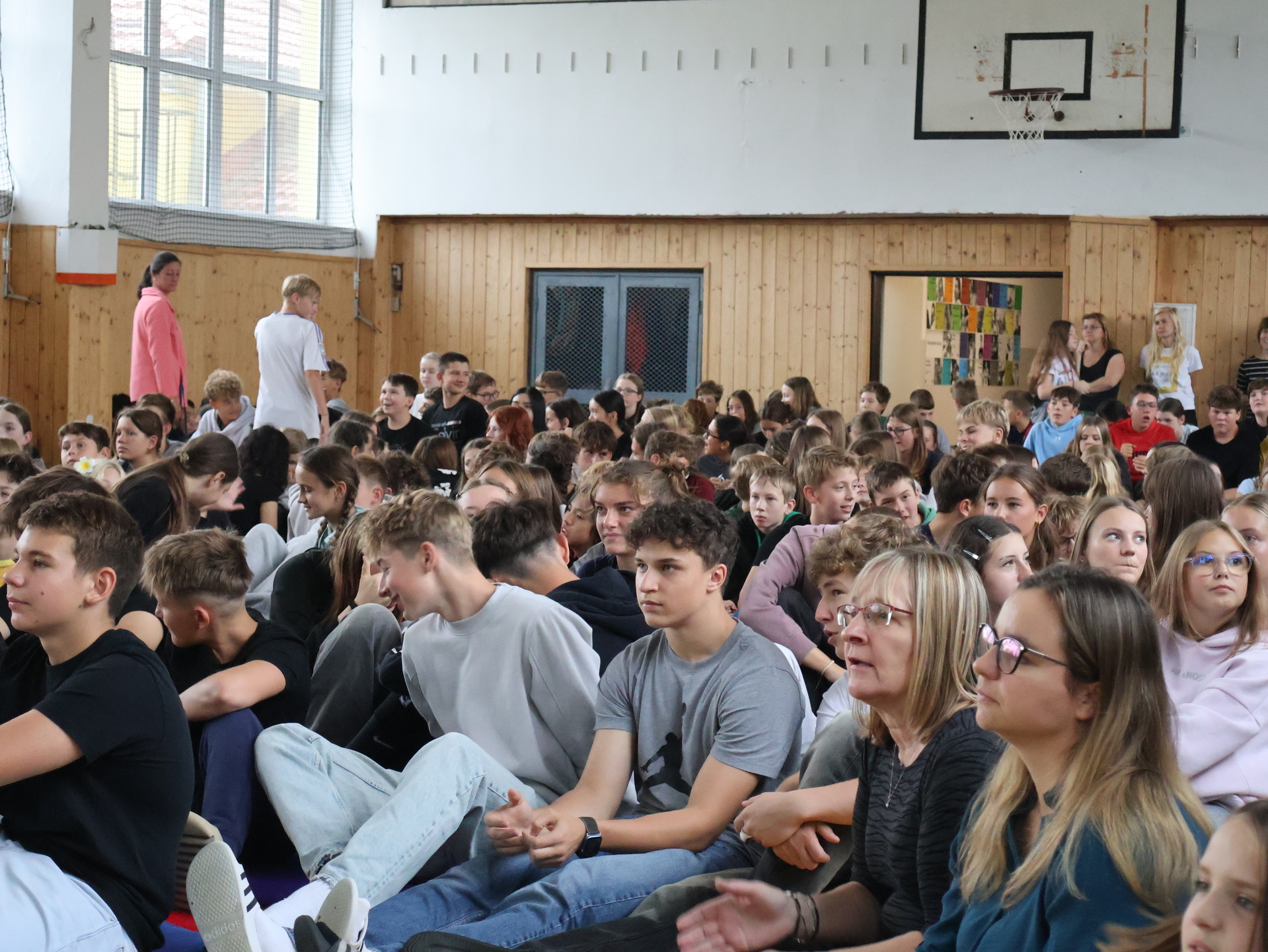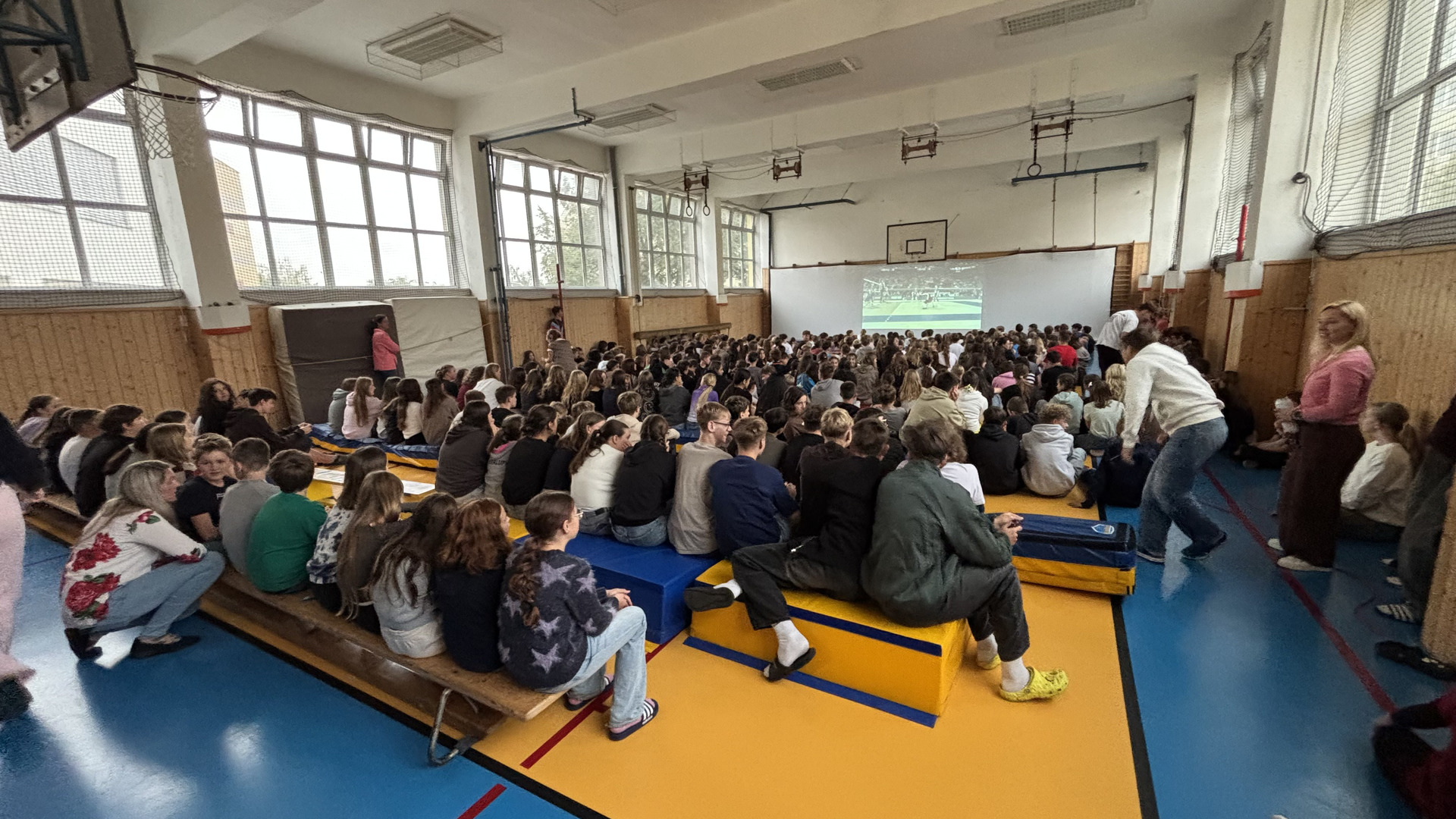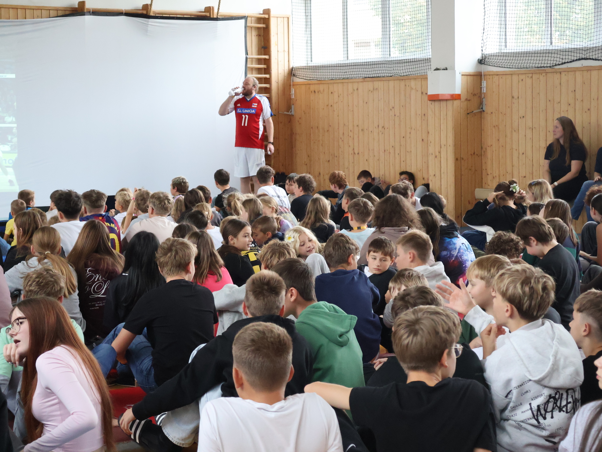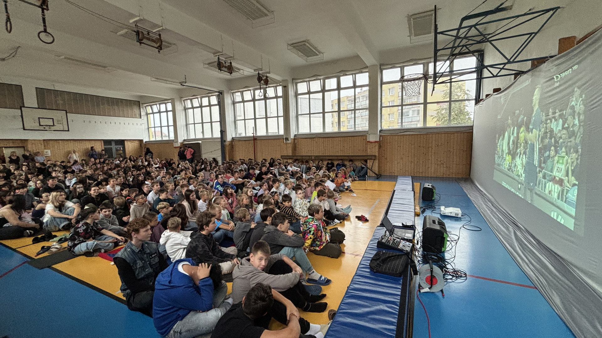 Ve čtvrtek 25.9.2025 se psala volejbalová historie a my jsme byli při tom! Čeští volejbalisté od 9:30 nastoupili ke čtvrtfinálovému utkání Mistrovsví světa proti Íránu, který ovládli 3:1 na sety a postoupili tak mezi 4 nejlepší týmy na světě. Během 3. a 4. vyučovací hodiny naši tělocvičnu do poslední žíněnky zaplnili žáci druhého stupně, doplnění o třídy 2.A a 2.B, které měly mít zrovna tělocvik. Malí i větší fanoušci vytvořili neskutečnou atmosféru a jejich fandění bylo slyšet nejen po celé škole, ale snad až na Filipíny, kde se Mistrovsví světa koná. Někteří žáci (nebo paní učitelky) zjistili, že se volejbal nehraje na góly, anebo že zápas nekončí po druhém setu. Jiní zápas sledovali odborným okem a neznalé spolužáky a spolužačky poučili. Společně jsme potvrdili slova Jiřího Rejmana, že Vodolka je volejbalová bašta a roste nám tu nejenom spousta skvělých volejbalistek a volejbalistů, ale i fanoušků.