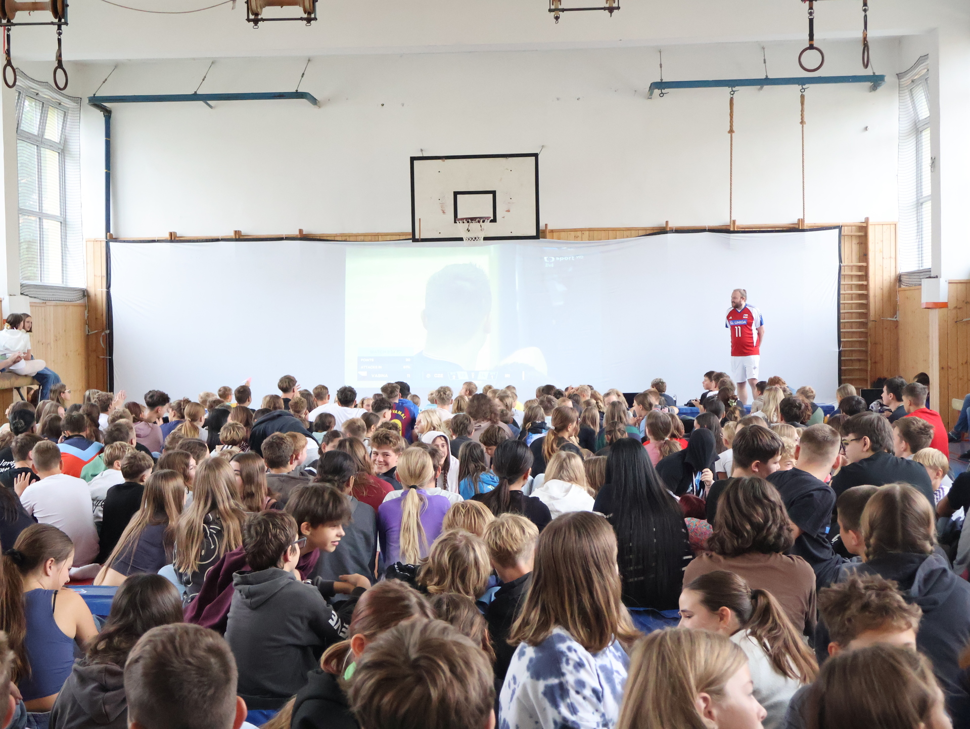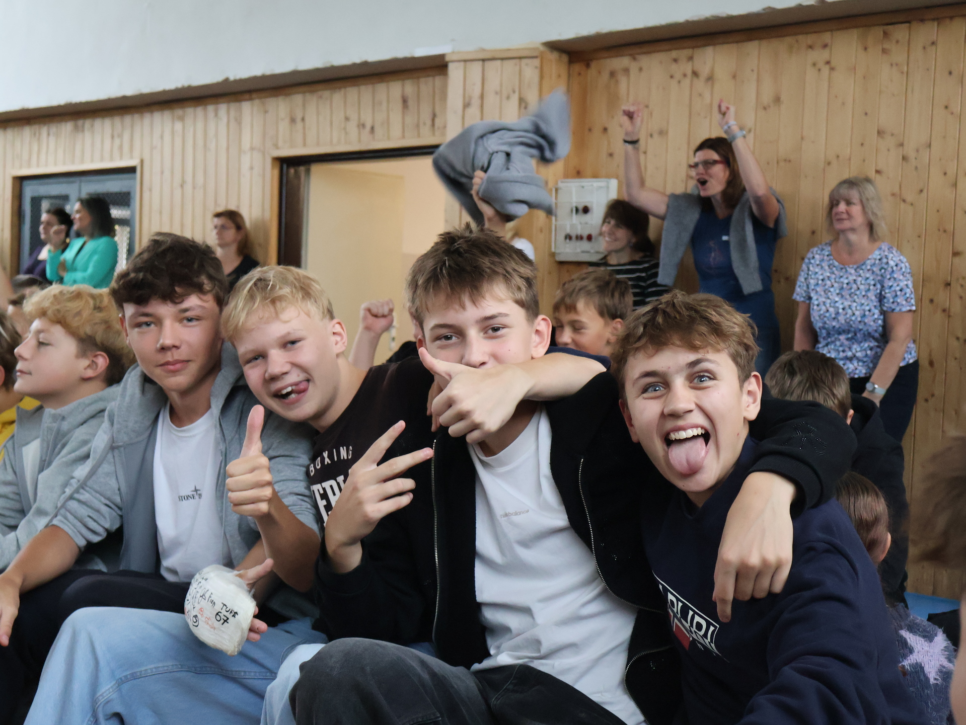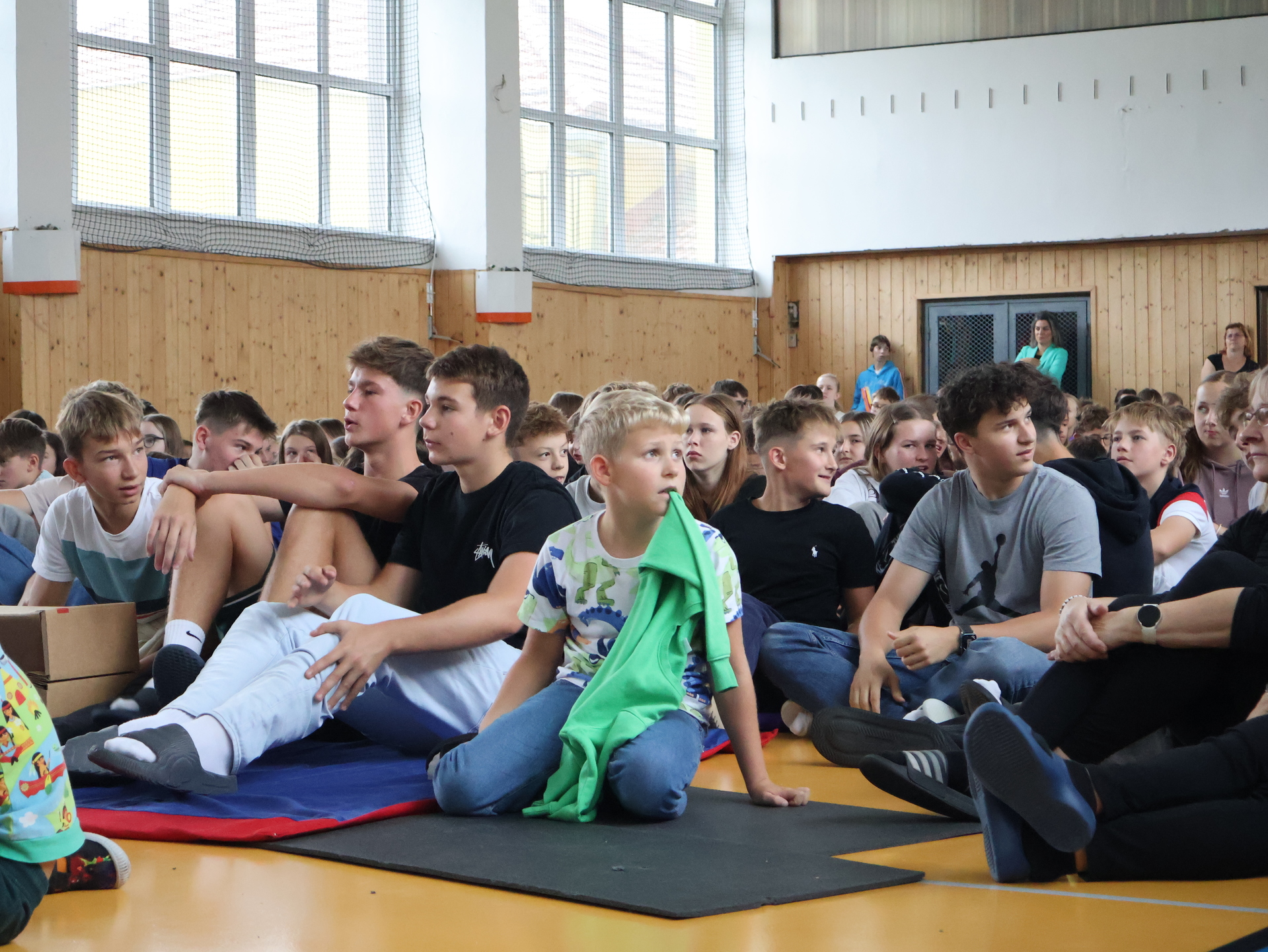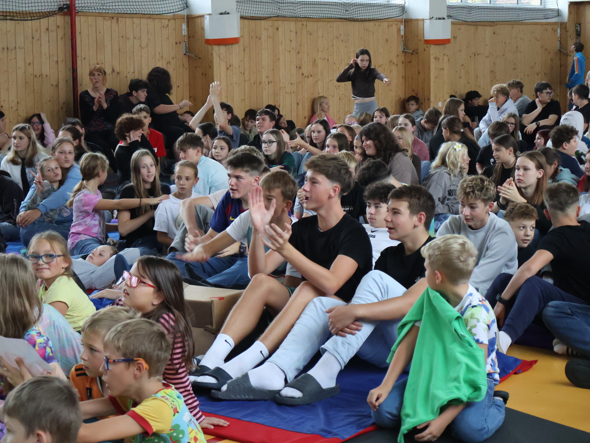 Ve čtvrtek 25.9.2025 se psala volejbalová historie a my jsme byli při tom! Čeští volejbalisté od 9:30 nastoupili ke čtvrtfinálovému utkání Mistrovsví světa proti Íránu, který ovládli 3:1 na sety a postoupili tak mezi 4 nejlepší týmy na světě. Během 3. a 4. vyučovací hodiny naši tělocvičnu do poslední žíněnky zaplnili žáci druhého stupně, doplnění o třídy 2.A a 2.B, které měly mít zrovna tělocvik. Malí i větší fanoušci vytvořili neskutečnou atmosféru a jejich fandění bylo slyšet nejen po celé škole, ale snad až na Filipíny, kde se Mistrovsví světa koná. Někteří žáci (nebo paní učitelky) zjistili, že se volejbal nehraje na góly, anebo že zápas nekončí po druhém setu. Jiní zápas sledovali odborným okem a neznalé spolužáky a spolužačky poučili. Společně jsme potvrdili slova Jiřího Rejmana, že Vodolka je volejbalová bašta a roste nám tu nejenom spousta skvělých volejbalistek a volejbalistů, ale i fanoušků.