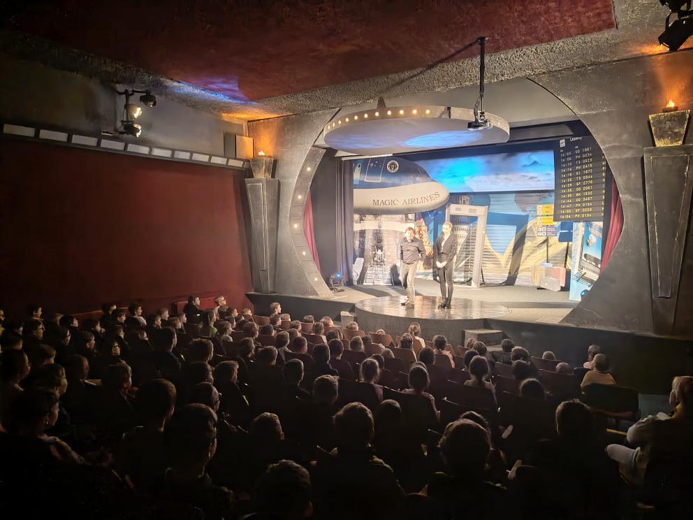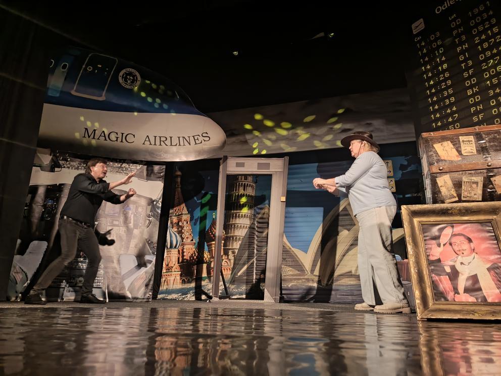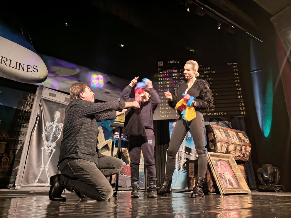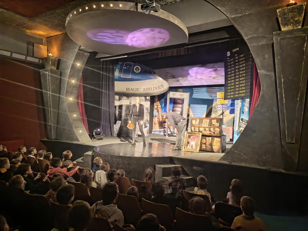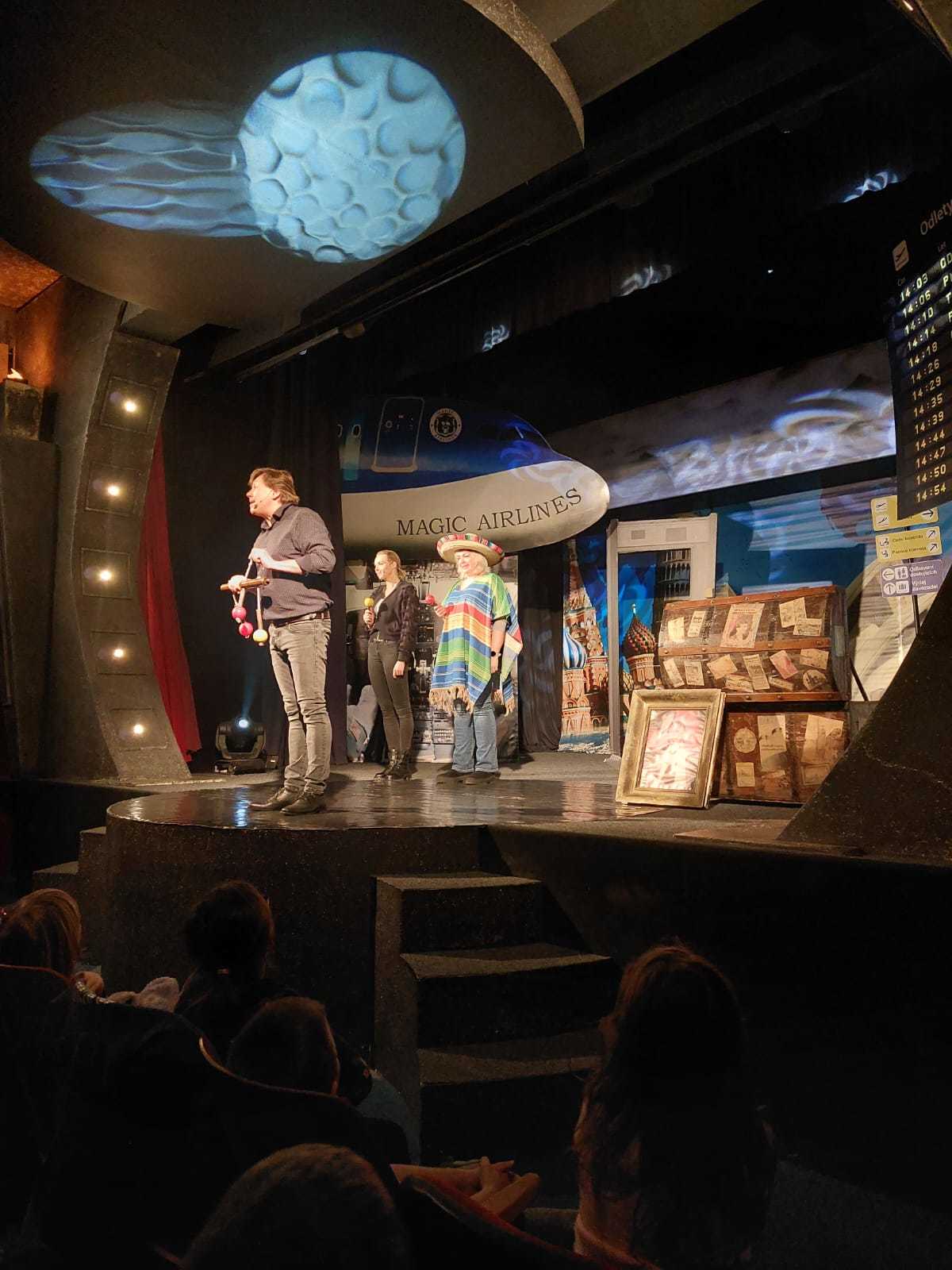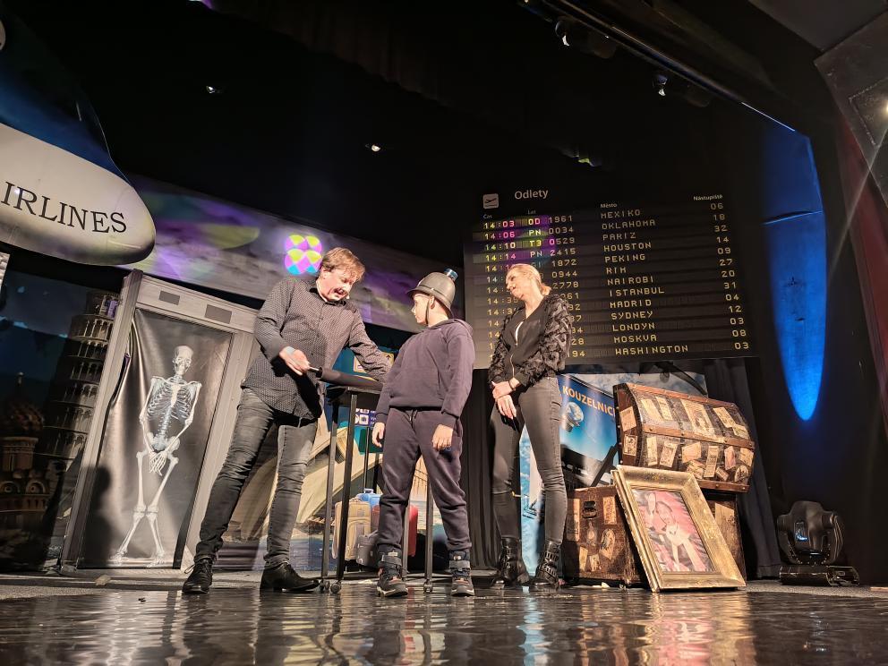 Během představení se děti společně s kouzelníkem a jeho asistentkou vydaly na imaginární cestu napříč kontinenty. Navštívily Evropu, Austrálii, Rusko, Divoký západ i další kouty světa, kde se setkaly s originálními kouzly, překvapivými triky a spoustou zábavy.
