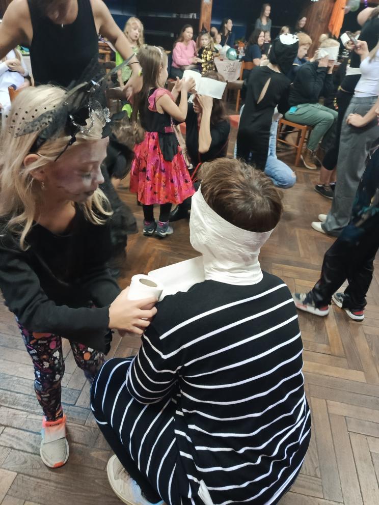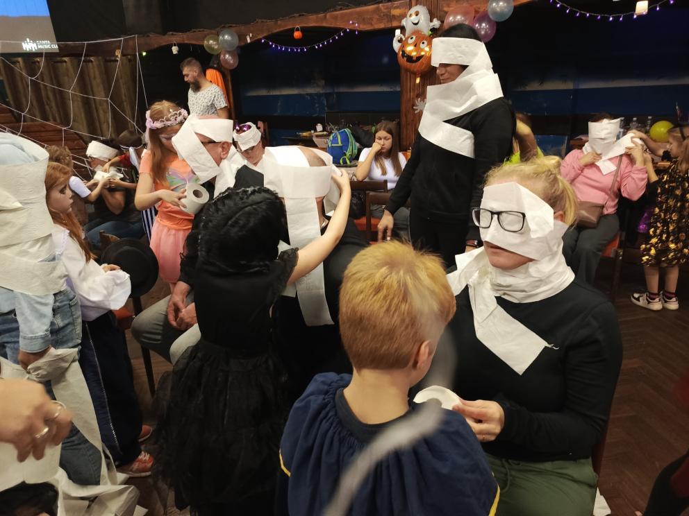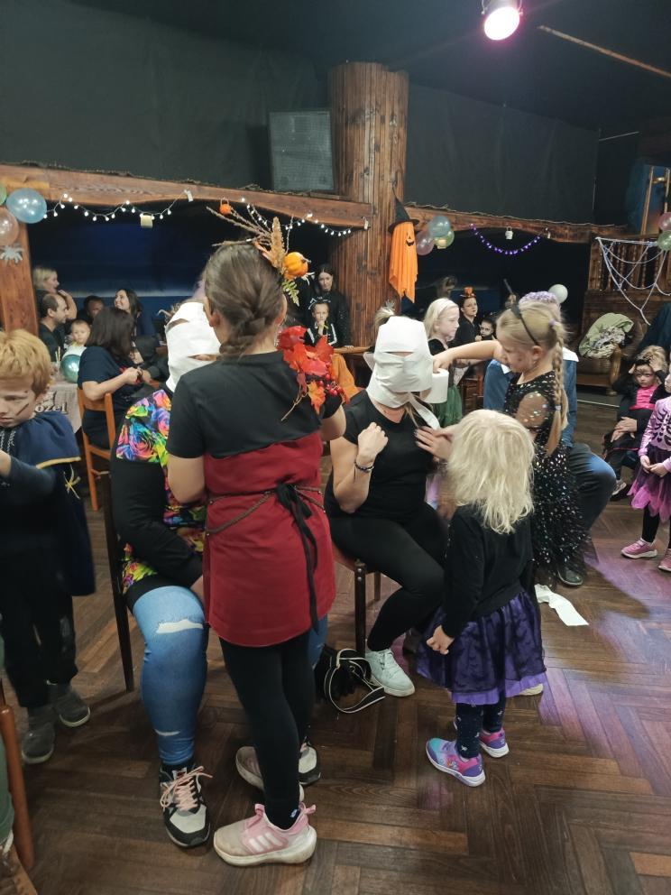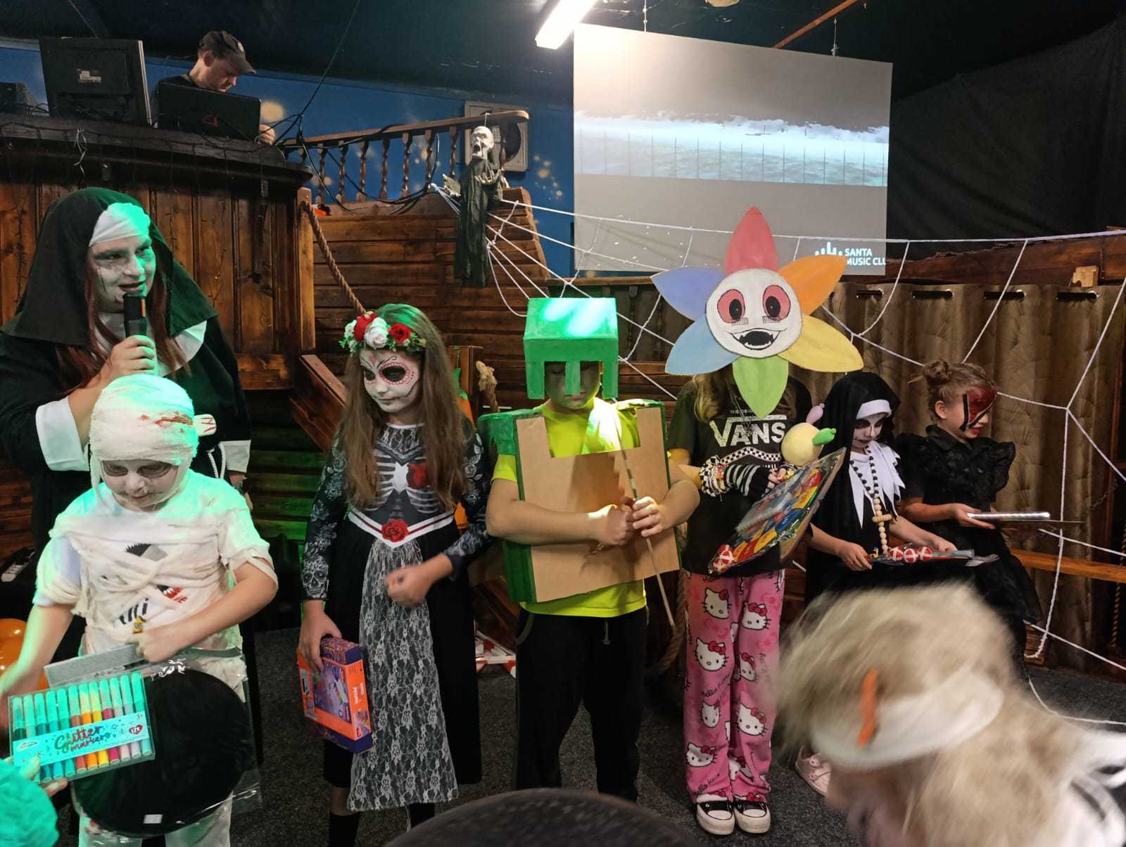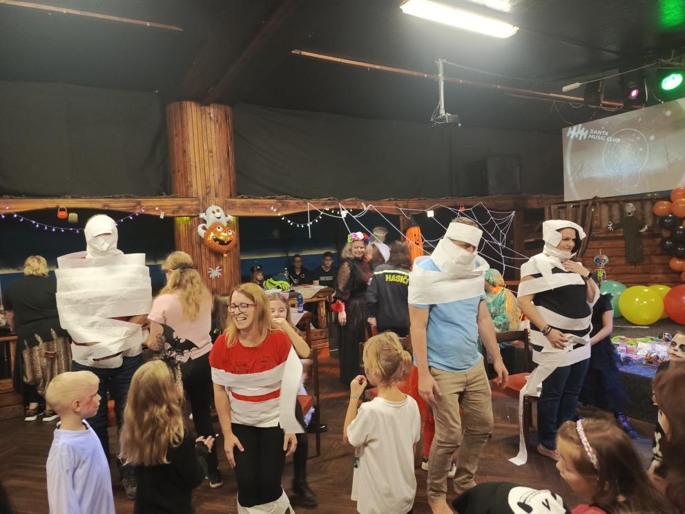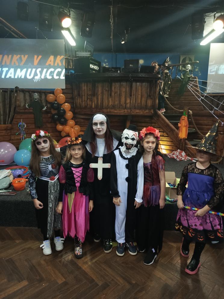 Děti i rodiče přišli v krásných a originálních kostýmech – bylo možné vidět různé druhy převleků, od čarodějnice, duchů a kostlivců až po jeptišky a nejrůznější příšerky. Během odpoledne si děti vyzkoušely několik soutěží, které měly velký úspěch: omotávání rodiče toaletním papírem nebo slalom s kloboučky a s dýní na kolečku a další. Každá disciplína přinesla spoustu zábavy a smíchu. Za splnění úkolů čekala na děti vždy malá odměna.