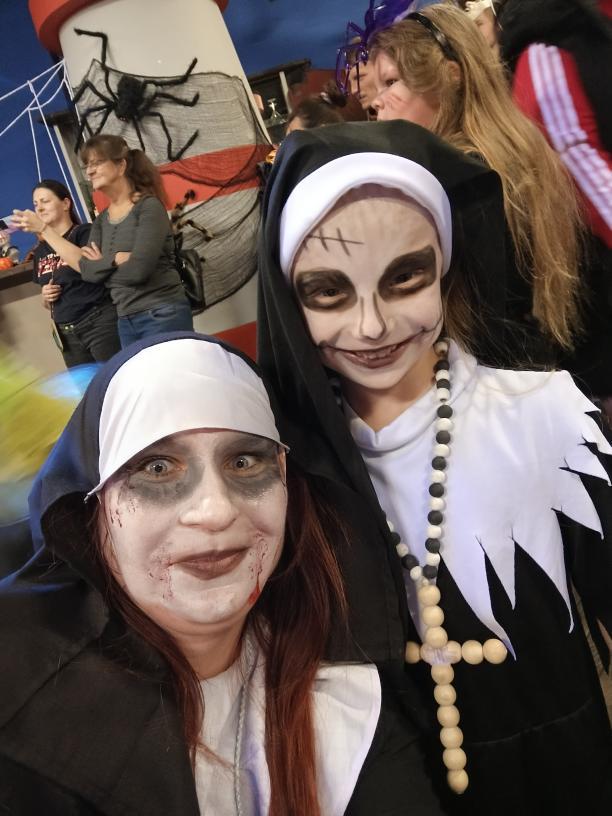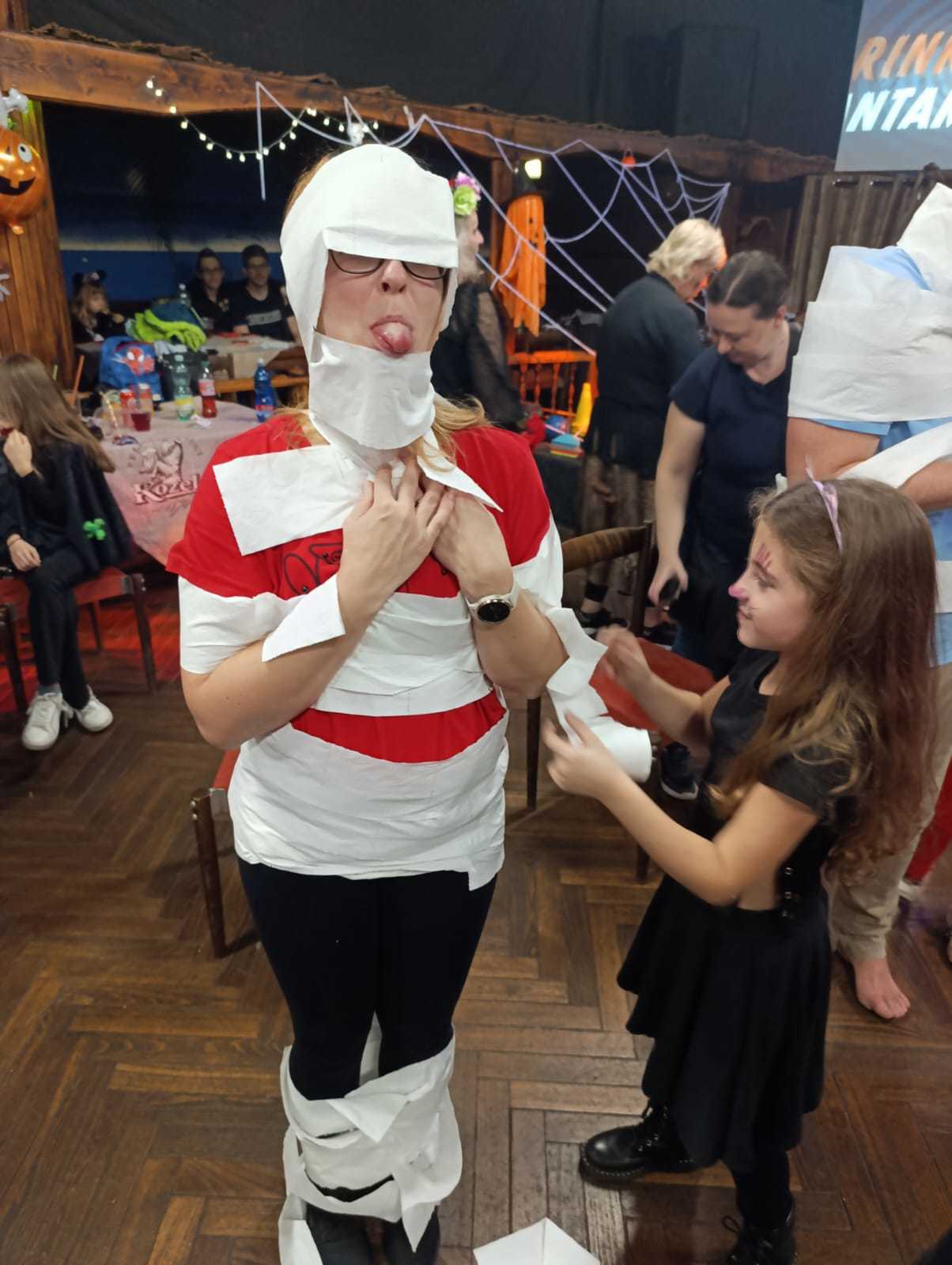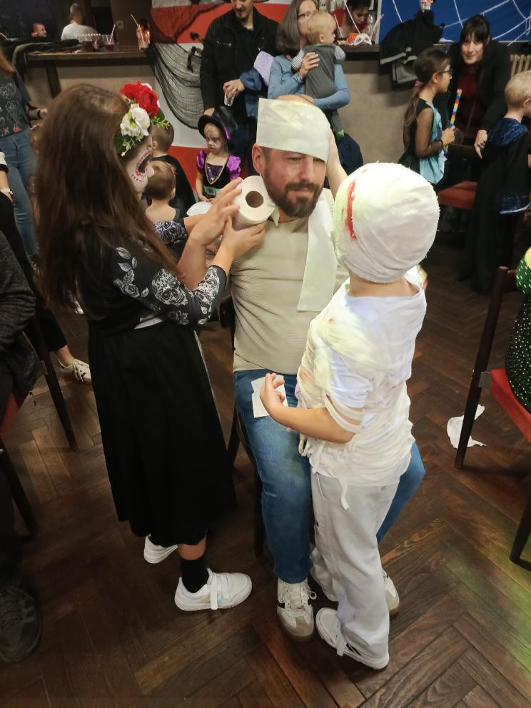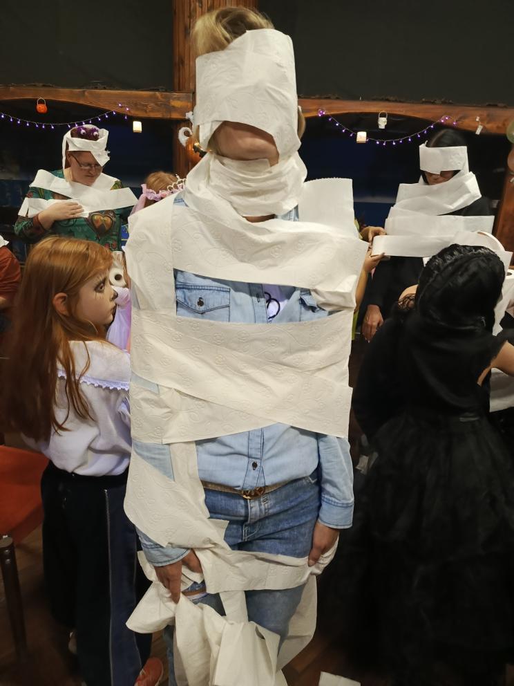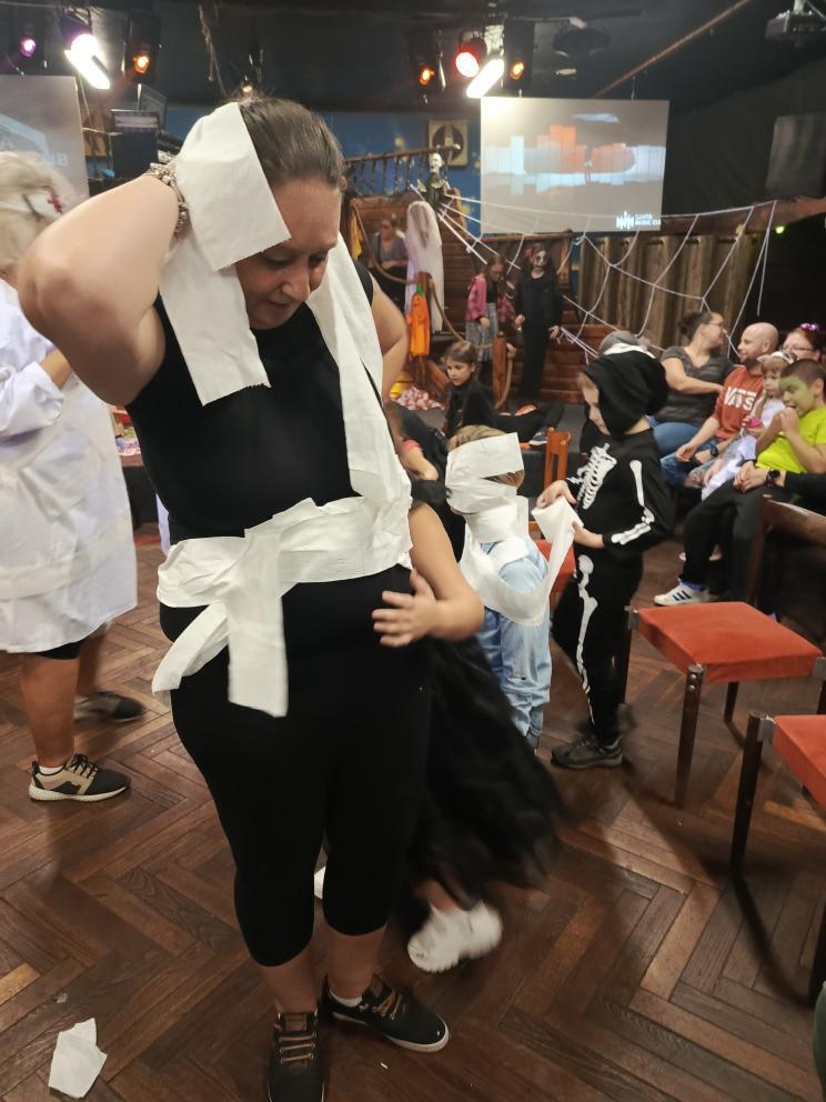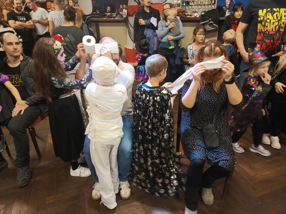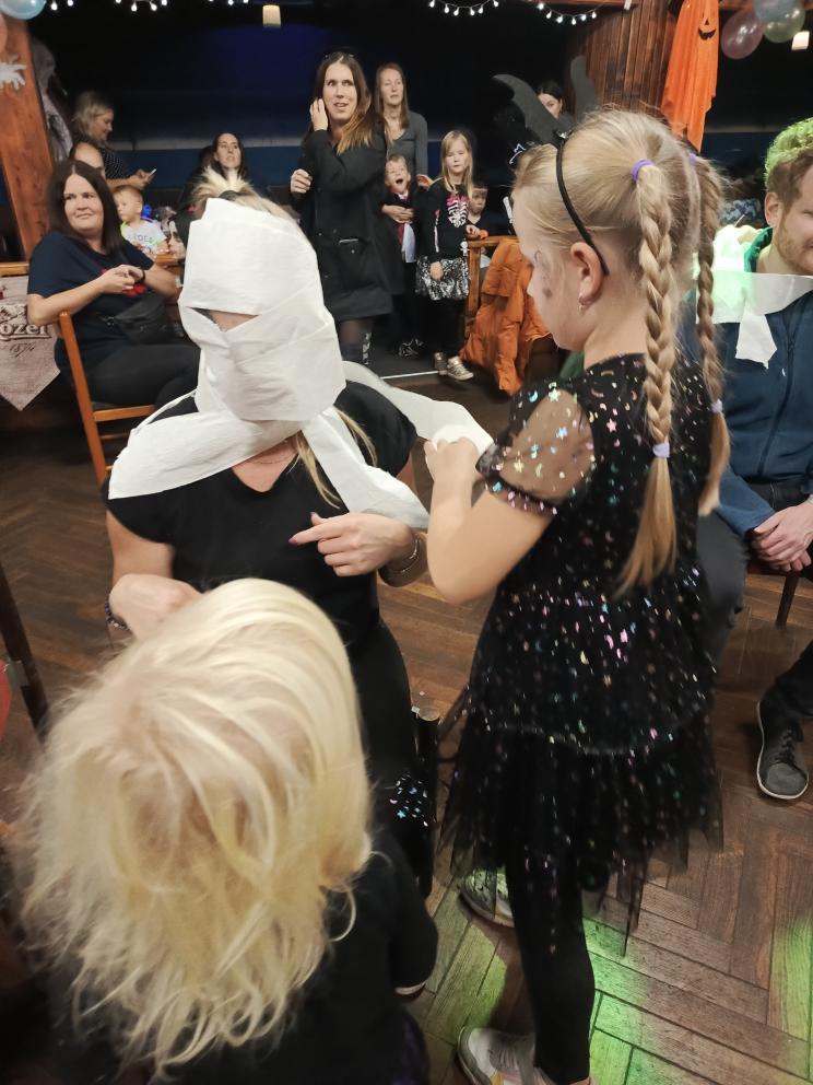 Děti i rodiče přišli v krásných a originálních kostýmech – bylo možné vidět různé druhy převleků, od čarodějnice, duchů a kostlivců až po jeptišky a nejrůznější příšerky. Během odpoledne si děti vyzkoušely několik soutěží, které měly velký úspěch: omotávání rodiče toaletním papírem nebo slalom s kloboučky a s dýní na kolečku a další. Každá disciplína přinesla spoustu zábavy a smíchu. Za splnění úkolů čekala na děti vždy malá odměna.