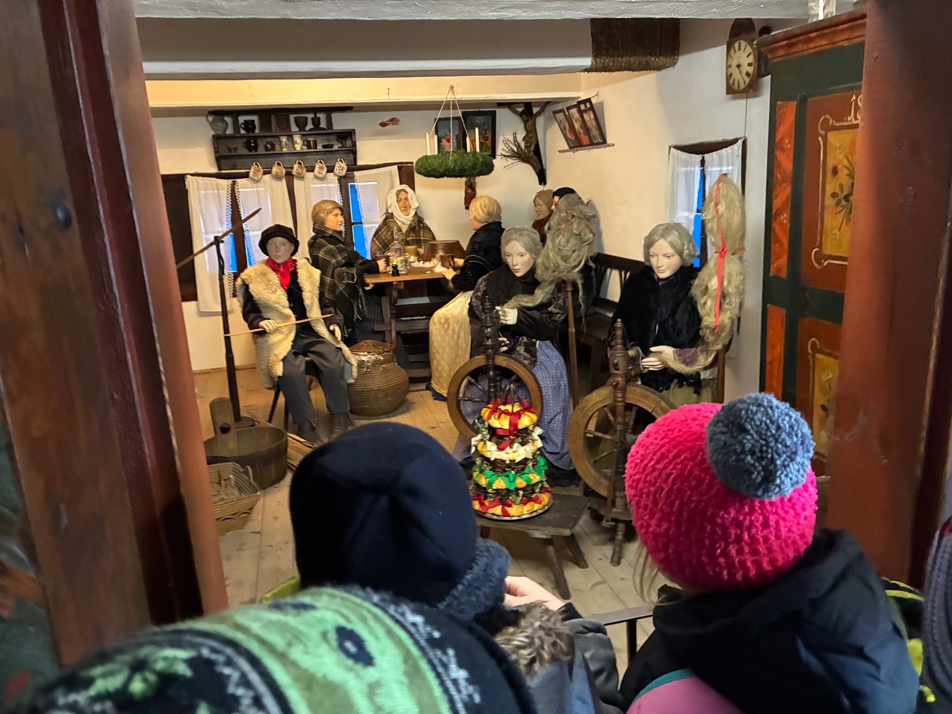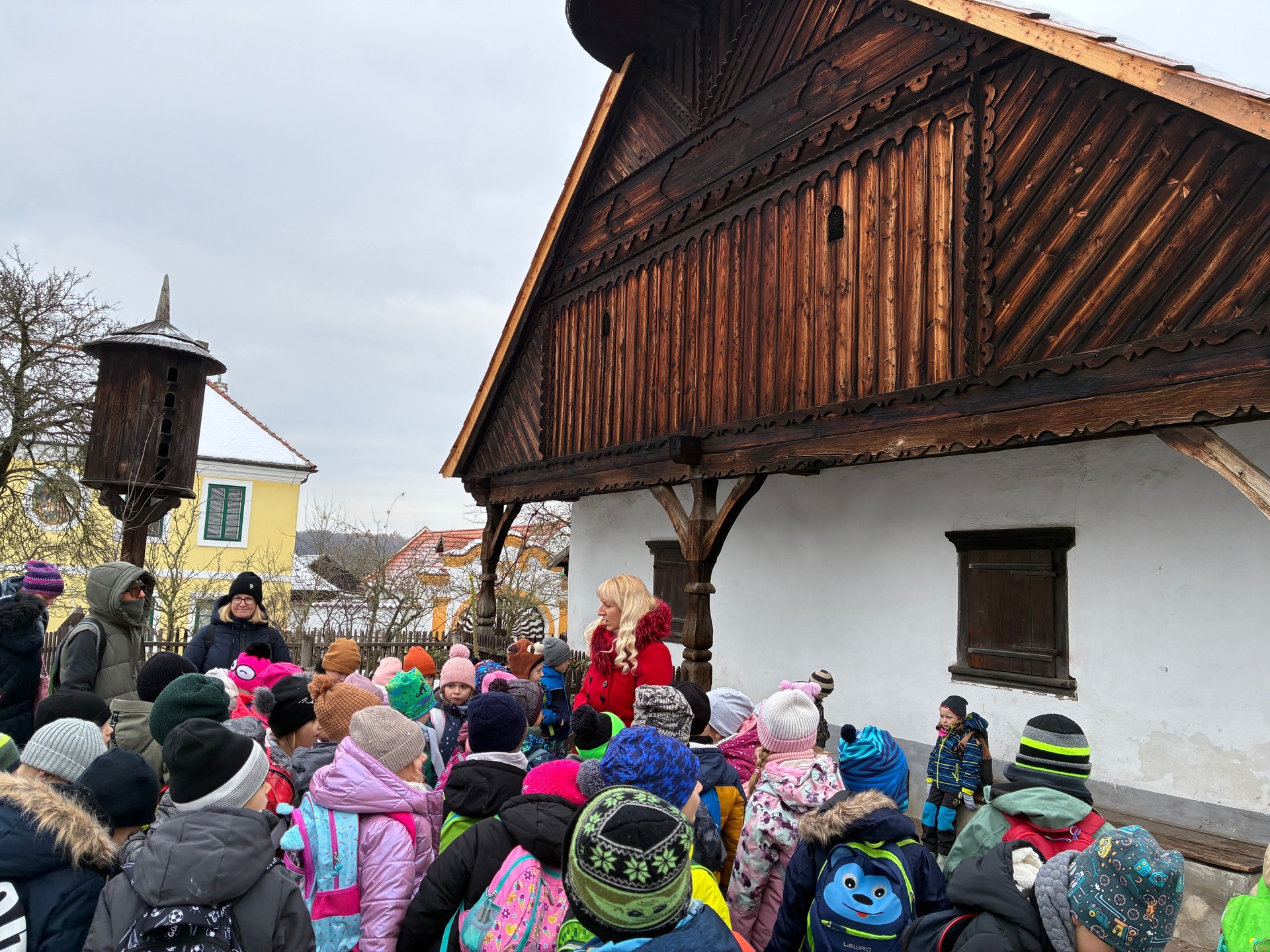 Cesta autobusem všem utekla velmi rychle, jelikož jízda mezi okrsky byla bezproblémová. První důležitou „akcí“ po příchodu do skanzenu byla jak jinak, než velká svačina a příprava na prohlídku celého areálu. Čekalo totiž na nás devět chalup, ve kterých probíhal život našich předků, jejich starobylé zvyky a obyčeje v čase adventu, v období od vánočních svátků až do Tří králů.