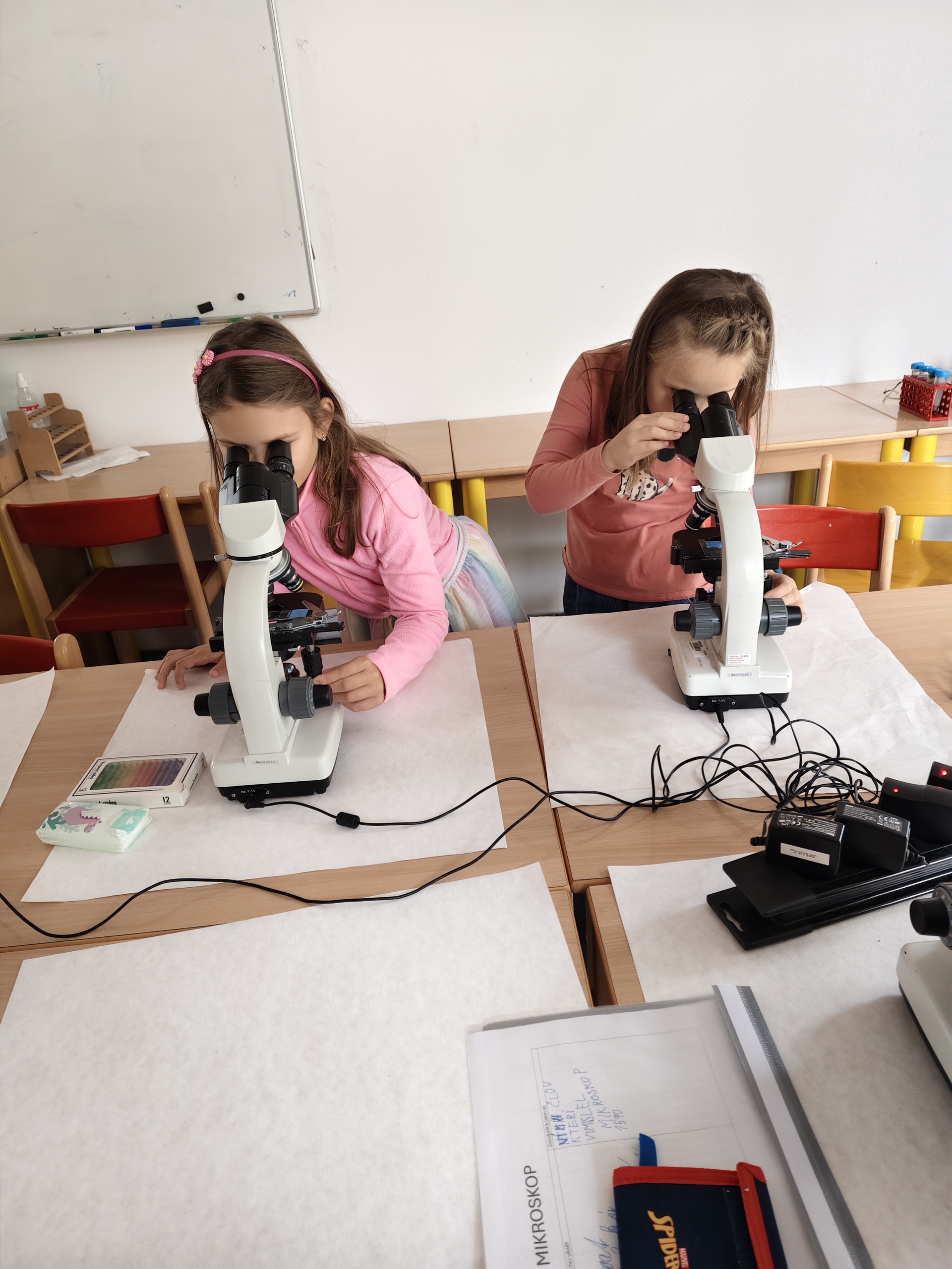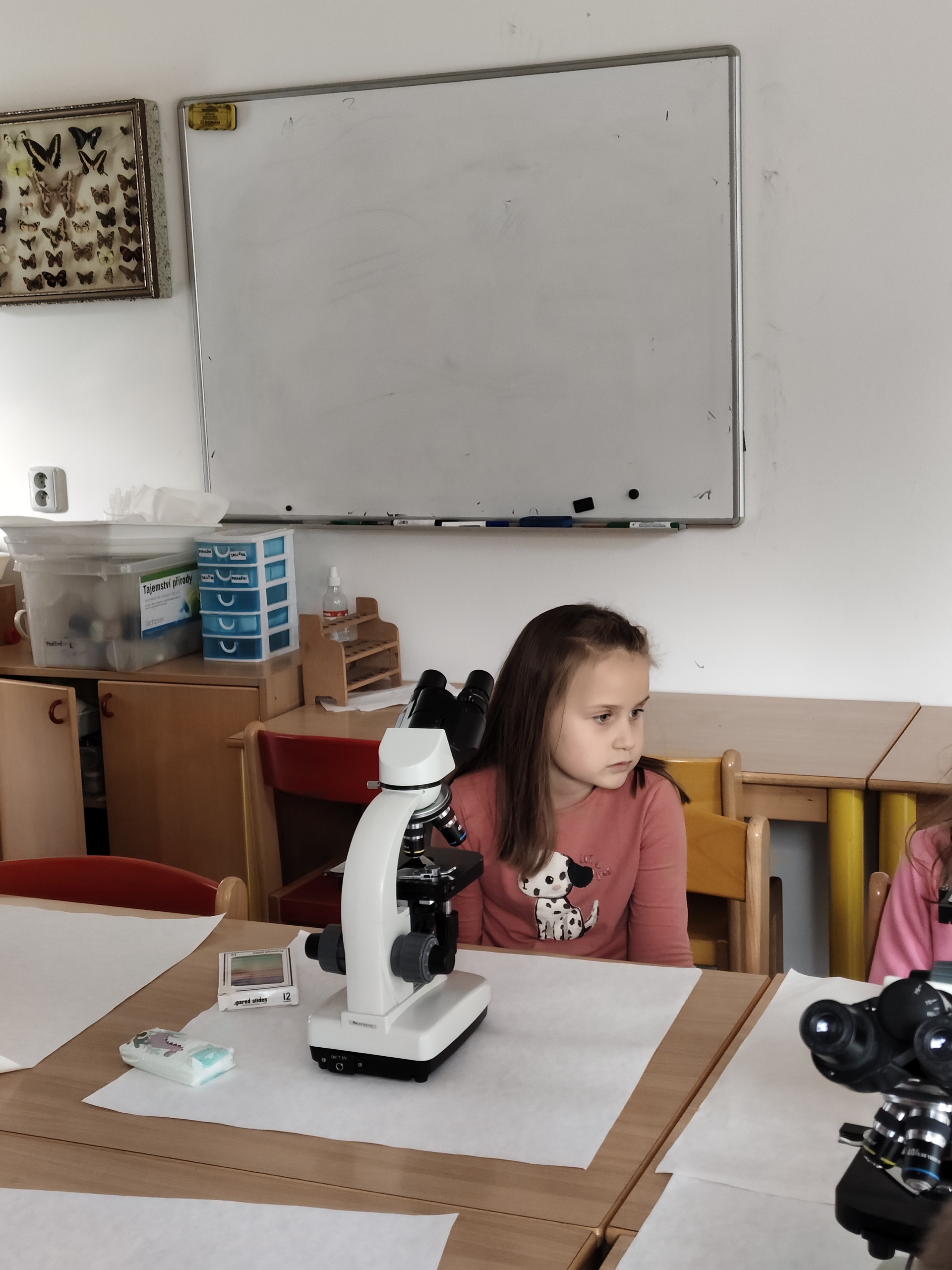 Navštívili jsme Stanici přírodovědců na Andělu v Praze. První skupina se věnovala práci s mikroskopem, kde si žáci mohli prohlédnout velmi zblízka sinice, veš, klíště nebo roztoče. Učili se pracovat s mikroskopem. Druhá skupina mezitím absolovovala procházku po areálu. kde se děti dozvěděly zajímavosti o plazech, papoušcích, hraboších, hlodavcích. malých opicích a klokanech. Později se skupiny vyměnily.