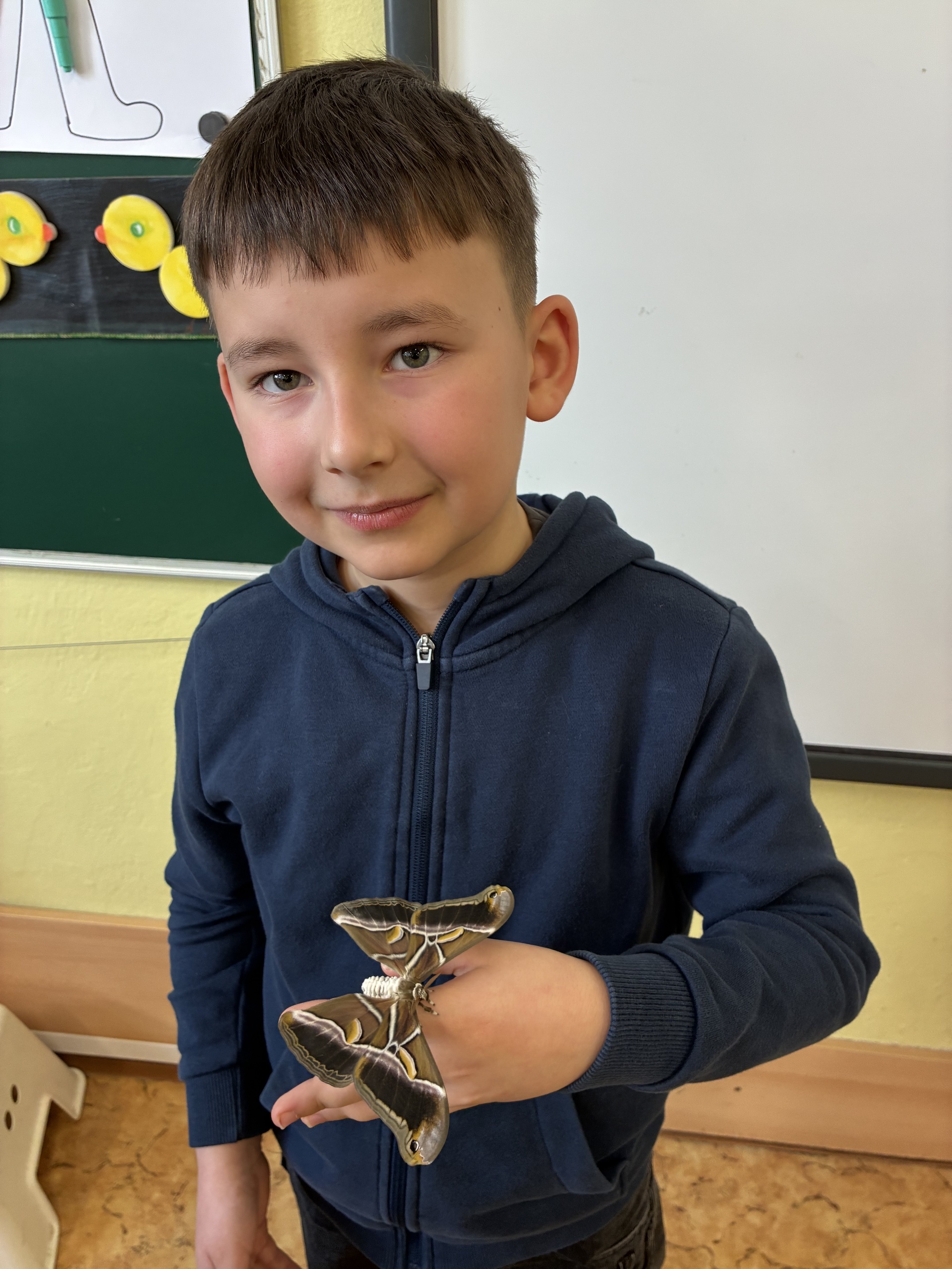 Druháčci dostali k vysvědčení neobvyklý dárek - housenky martináčů pajasanových. Více než měsíc se o ně starali, krmili je, pozorovali a zapisovali a kreslili vše, co zjistili. Nakonec se všechny housenky úspěšně zakuklily.