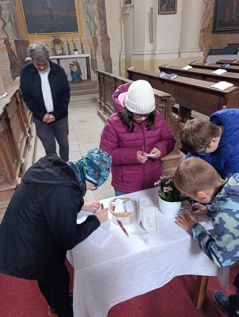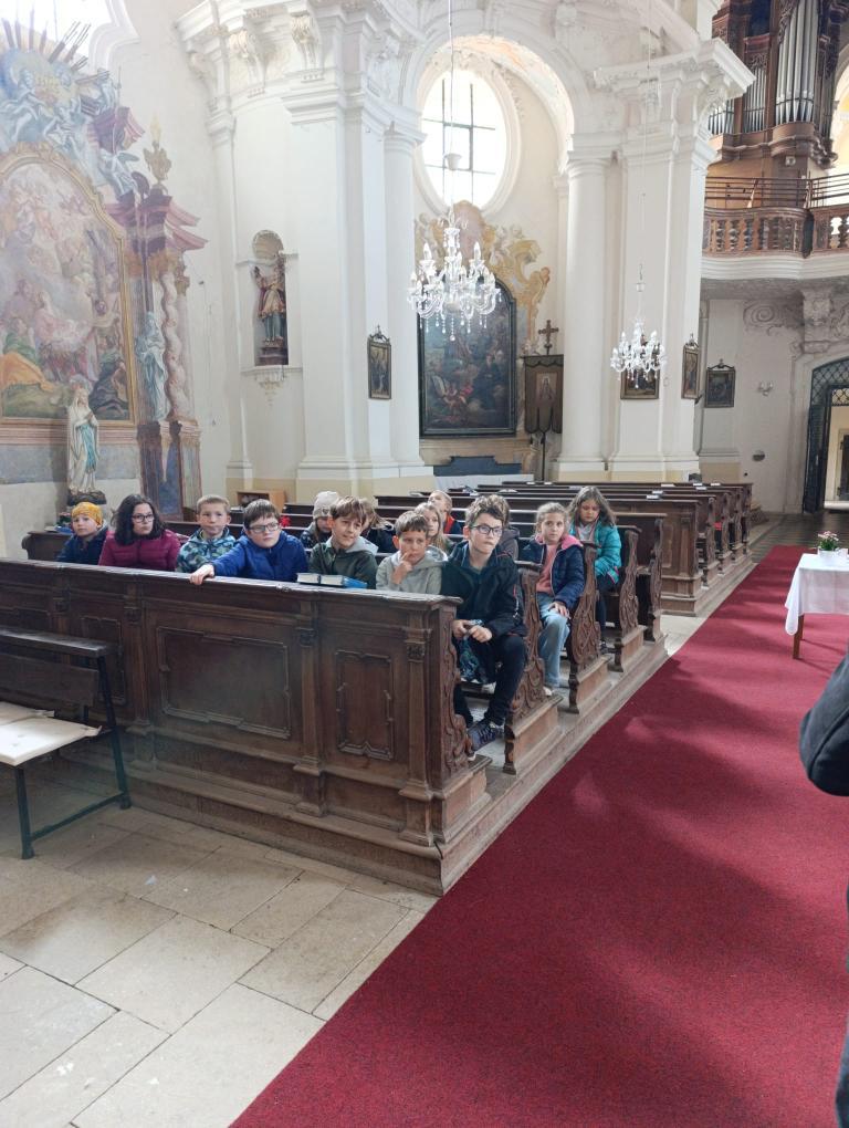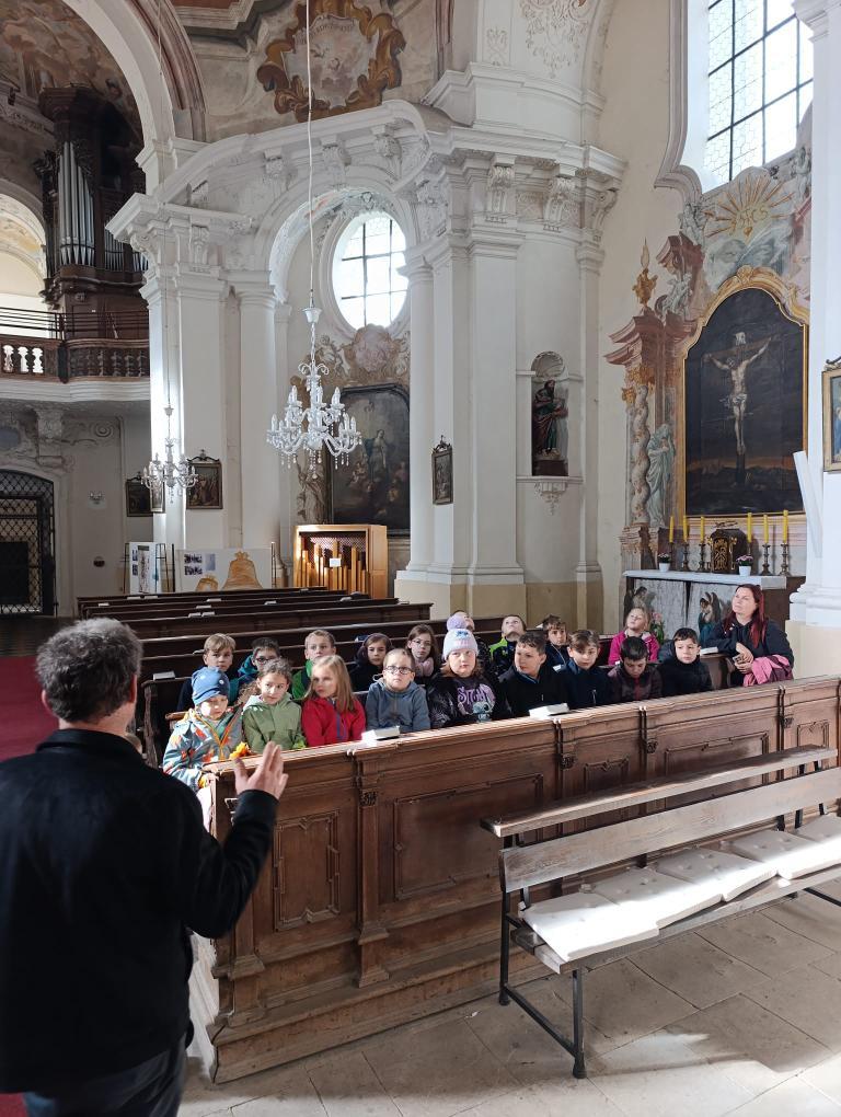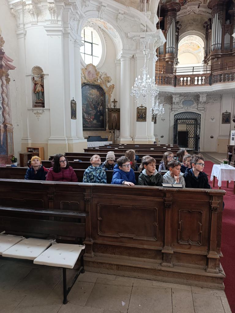 Po příchodu nás přivítal pan farář, který si pro nás připravil zajímavý a poutavý výklad. Vyprávěl o tom, kdy byl kostel postaven, jak se měnil v průběhu let a co všechno se zde odehrává během roku. Děti se dozvěděly, že kostel není jen místem bohoslužeb, ale i prostorem setkávání lidí, pomoci druhým a klidu.