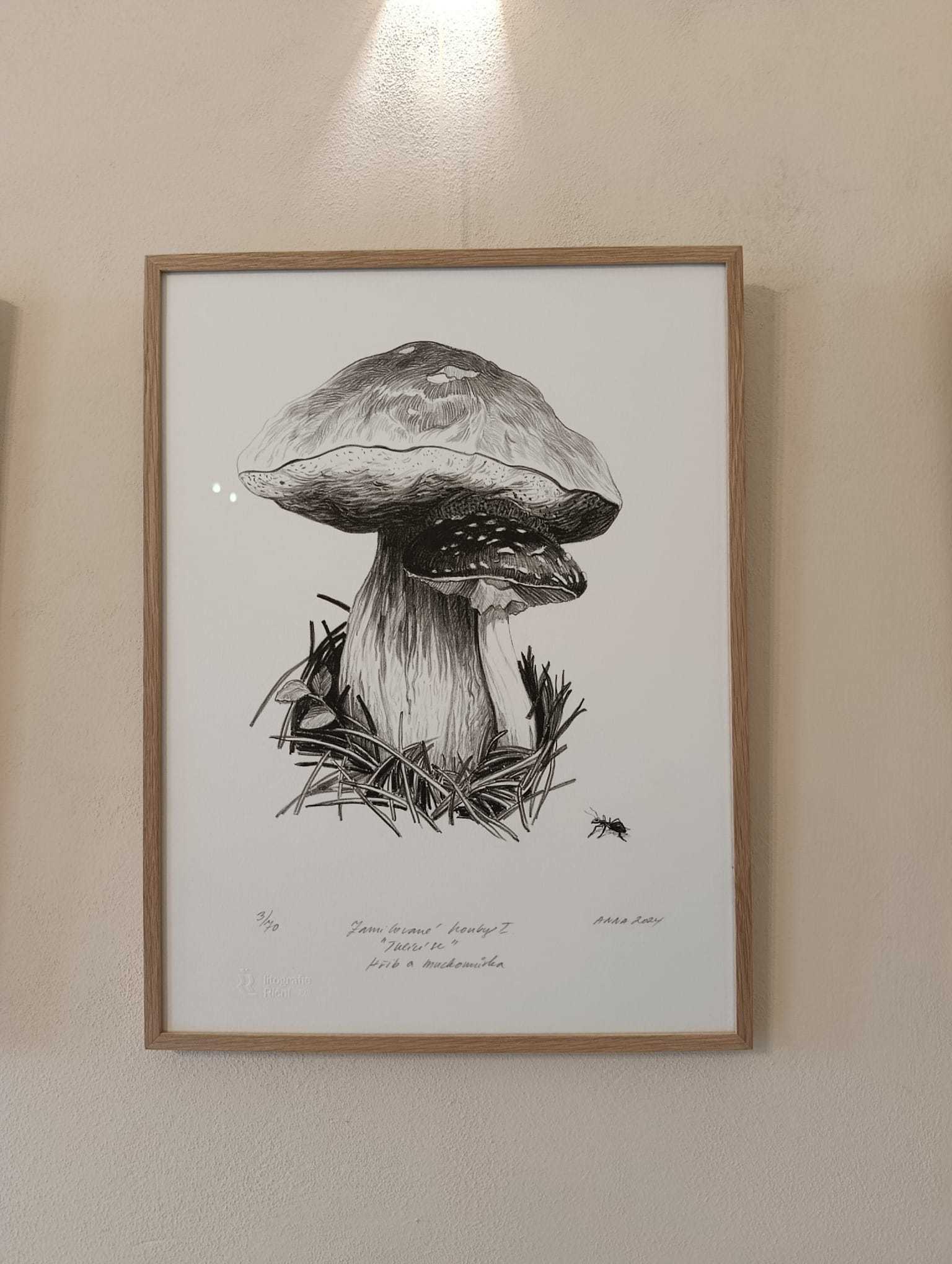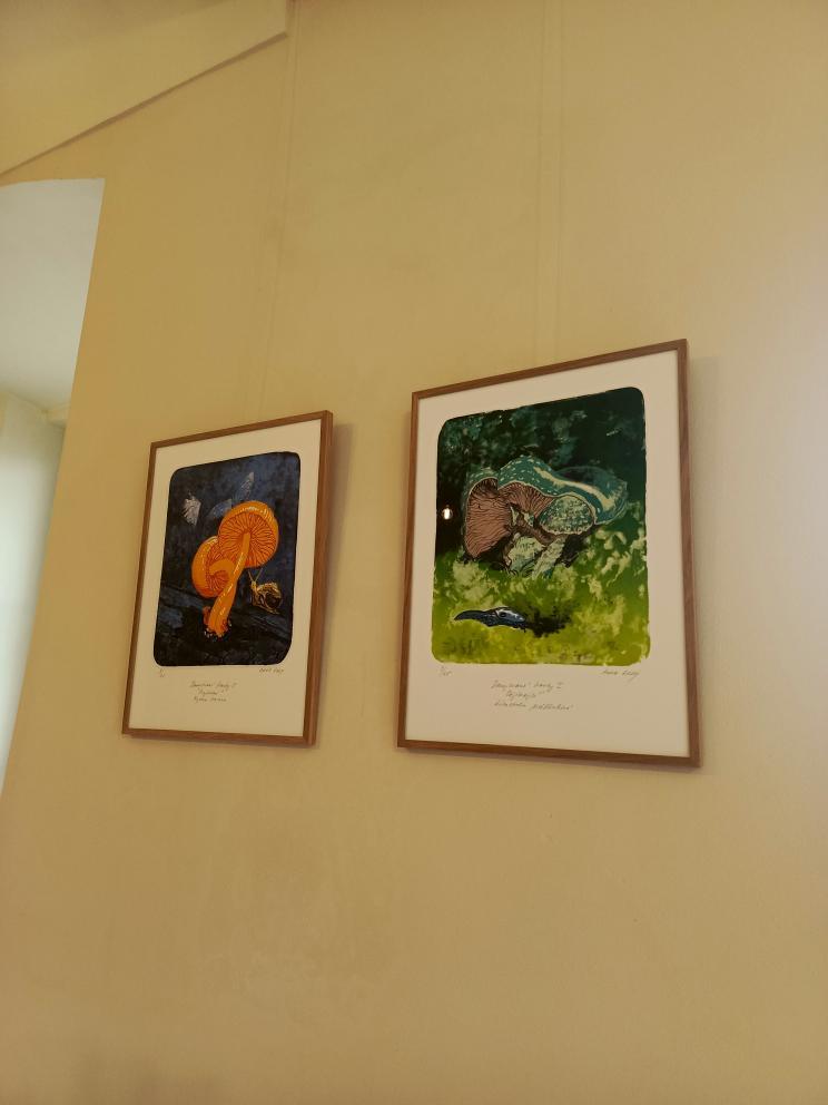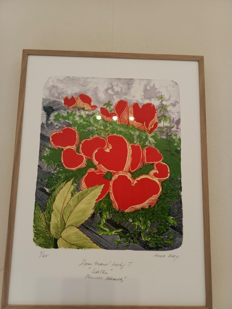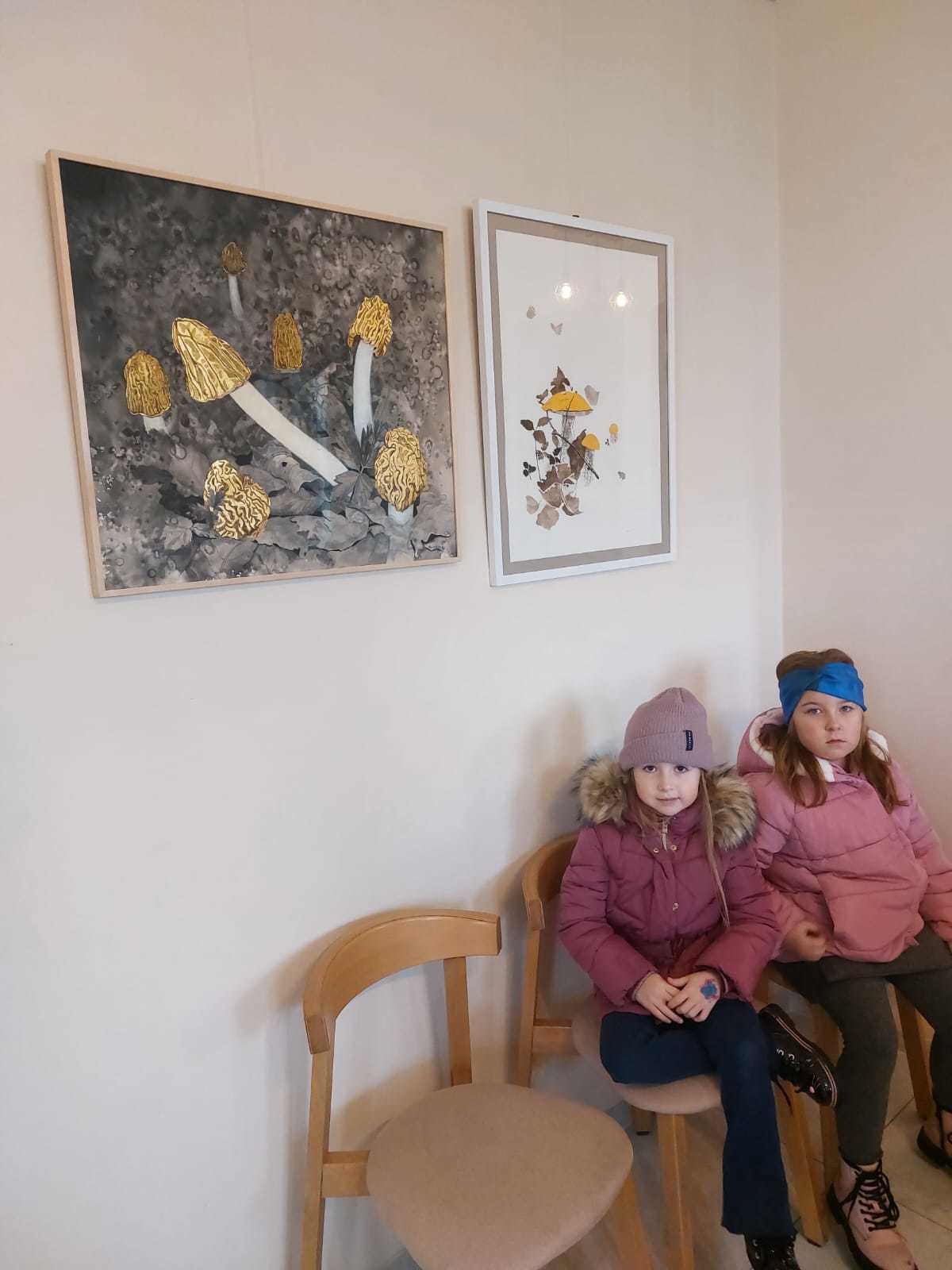Hlavním tématem výstavy byly houby – zachycené ve fascinujících detailech a často až v nadživotní velikosti. Děti zaujalo, jak realisticky a zároveň umělecky dokáže autorka vystihnout jejich tvary, strukturu i barevnost. Některé obrazy působily tak živě, že jsme měli pocit, jako bychom se ocitli v lese.