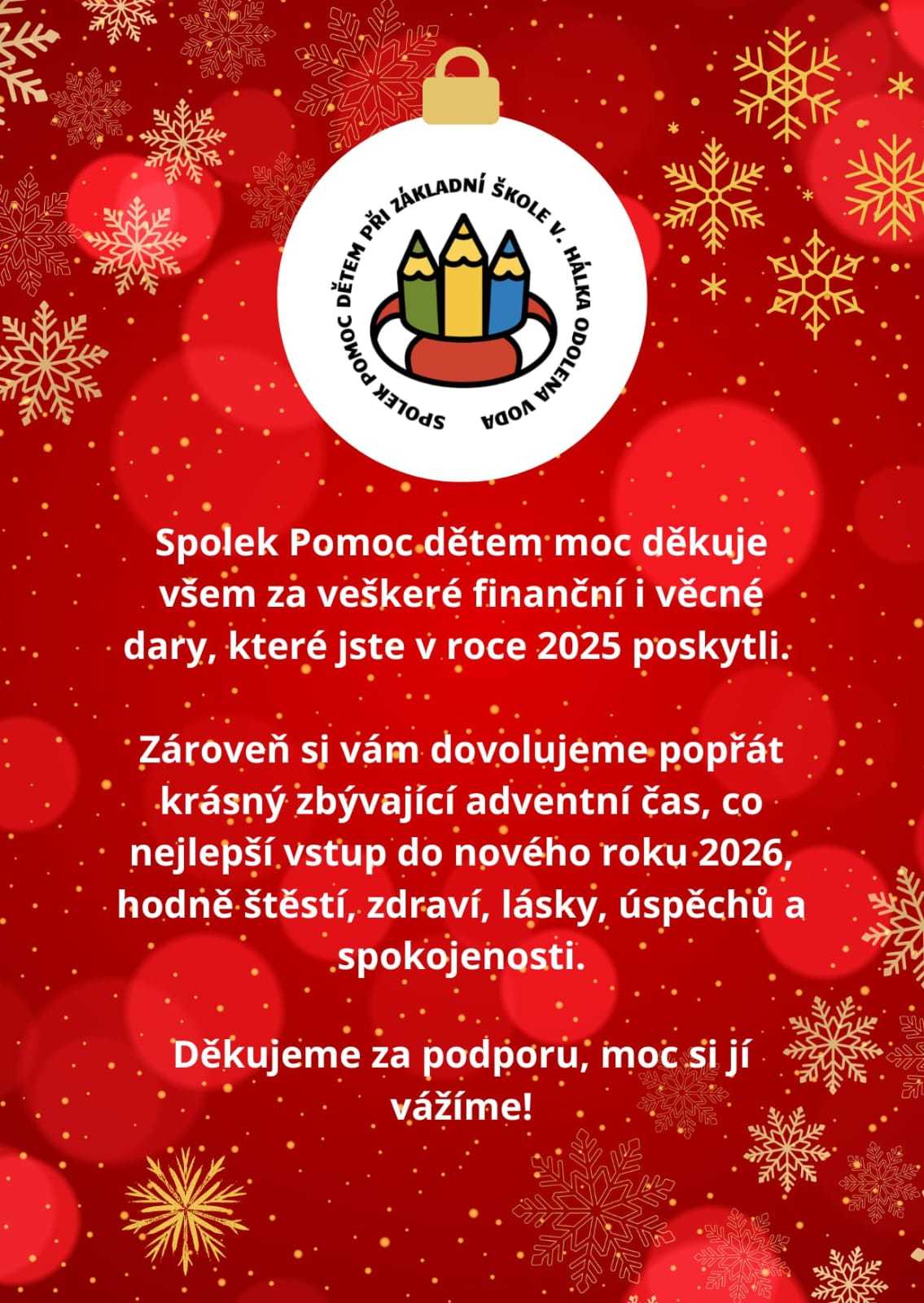 Poděkování spolek Pomoc dětem při ZŠ Odolena Voda