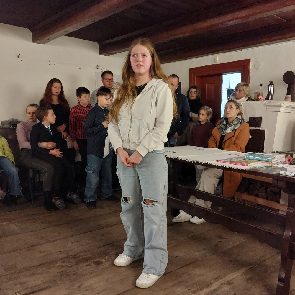 Učebnou zněly básně různých českých i zahraničních autorů a několik odvážlivců se pustilo i do přednesu prózy. S naším recitátorem Vojtou Svobodou jsme se se připojili on-line,protože měl (jako každoročně) připravený text z vlastní tvorby, ale nemoc mu zabránila se naší akce zúčastnit osobně.