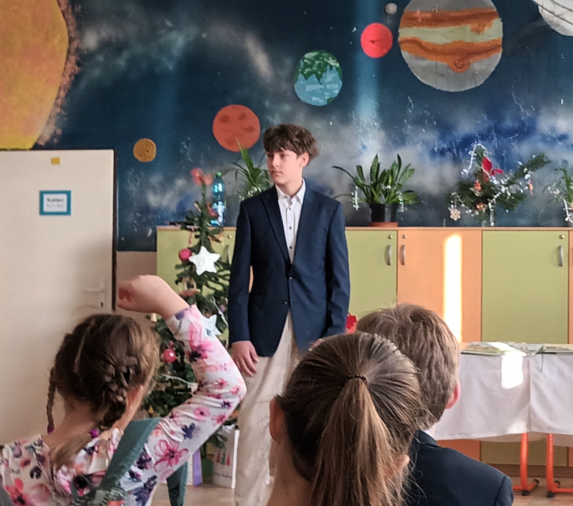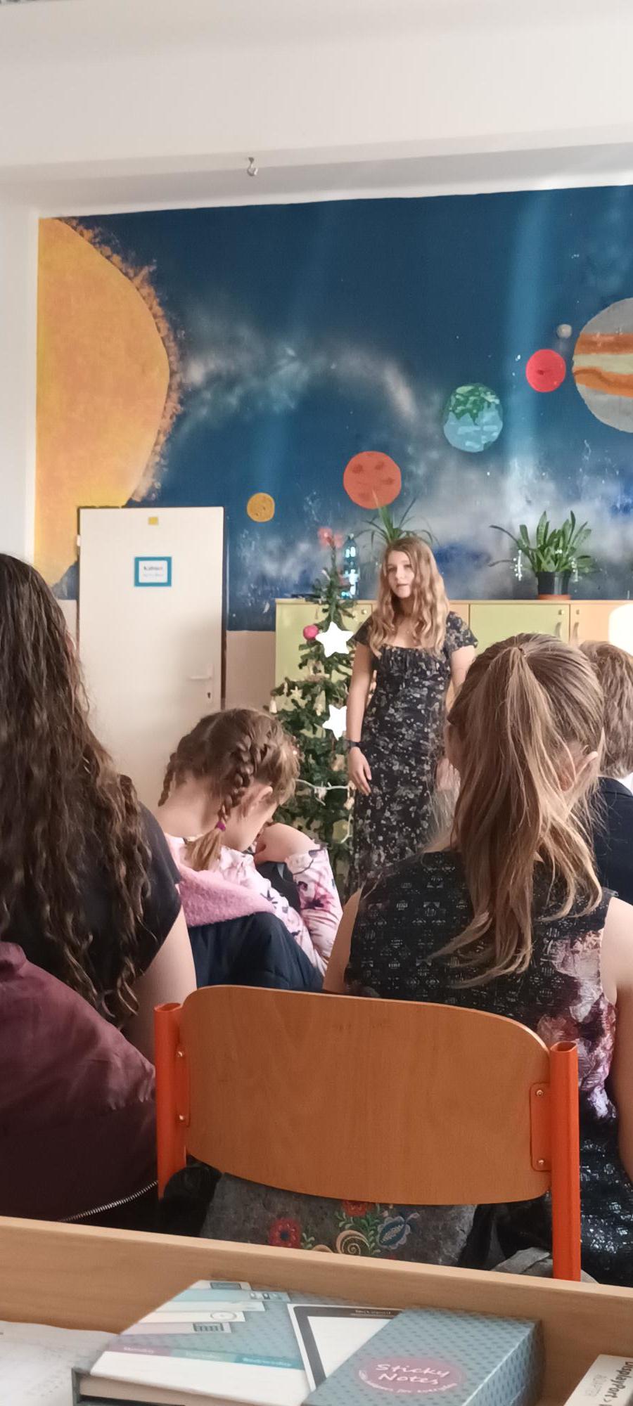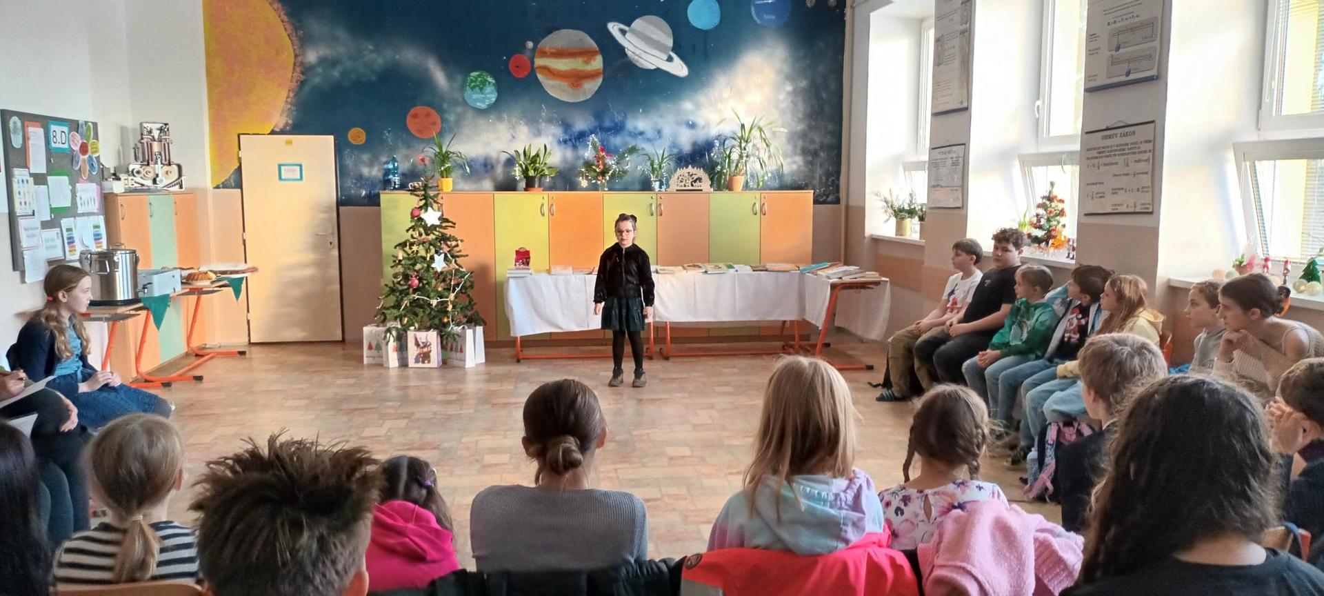 I letos jsme měli možnost porovnat výkony našich soutěžících s výkony dětí z MŠ a ZŠ nám. Svobody v Praze 6, ZŠ Panenské Břežany, ZŠ Líbeznice, které k nám přijely na vánoční setkání recitátorů 12. prosince.