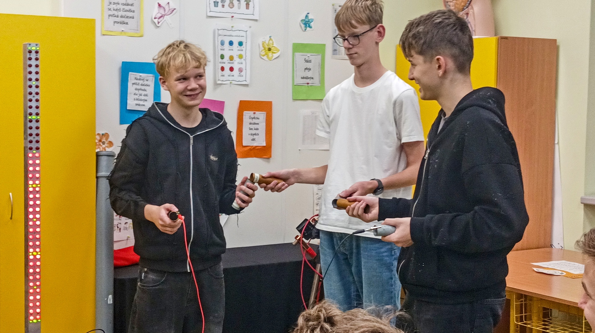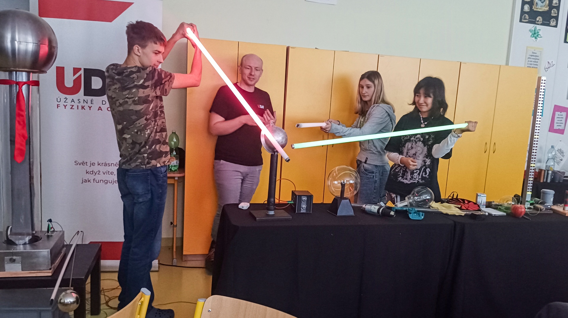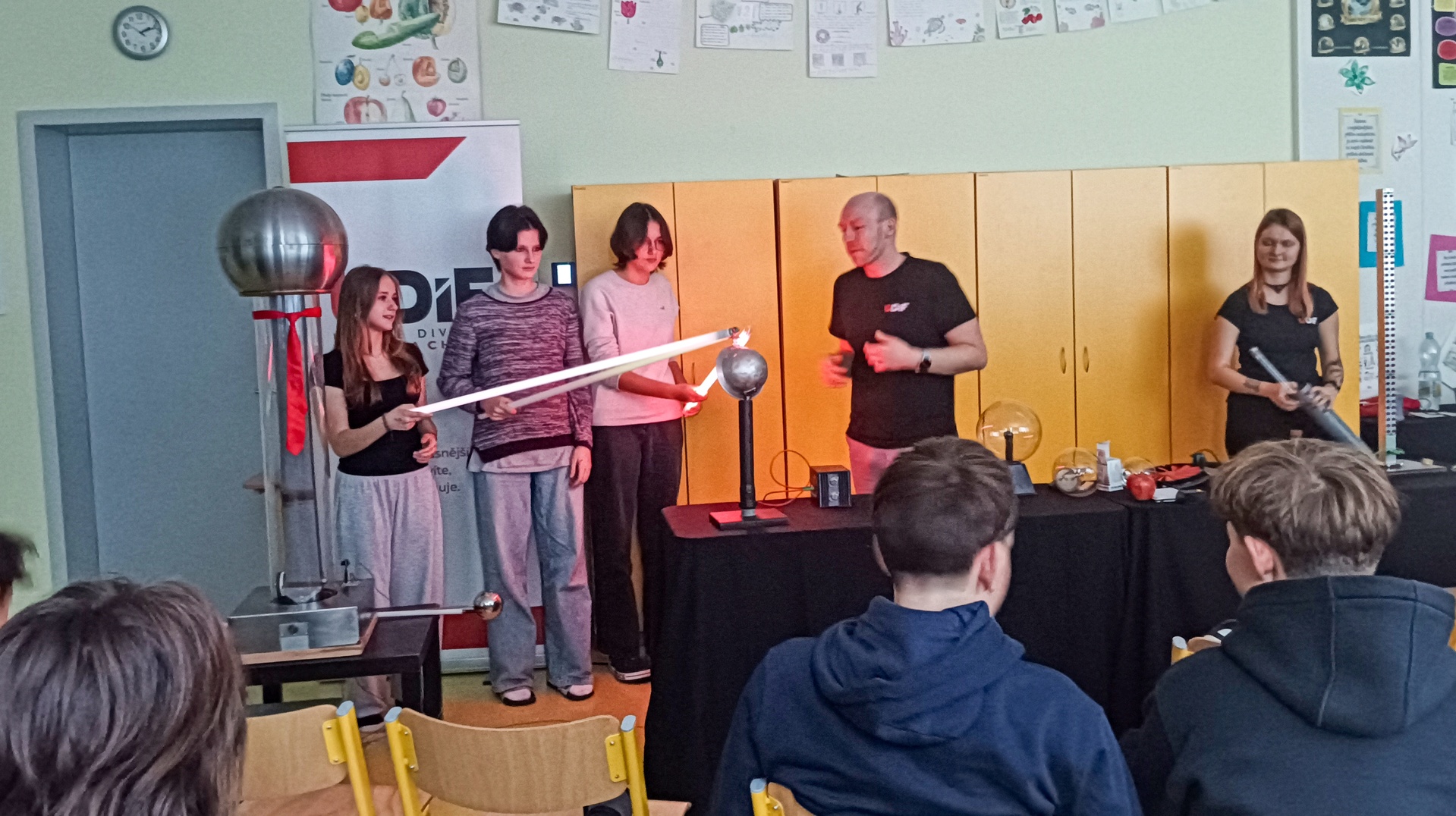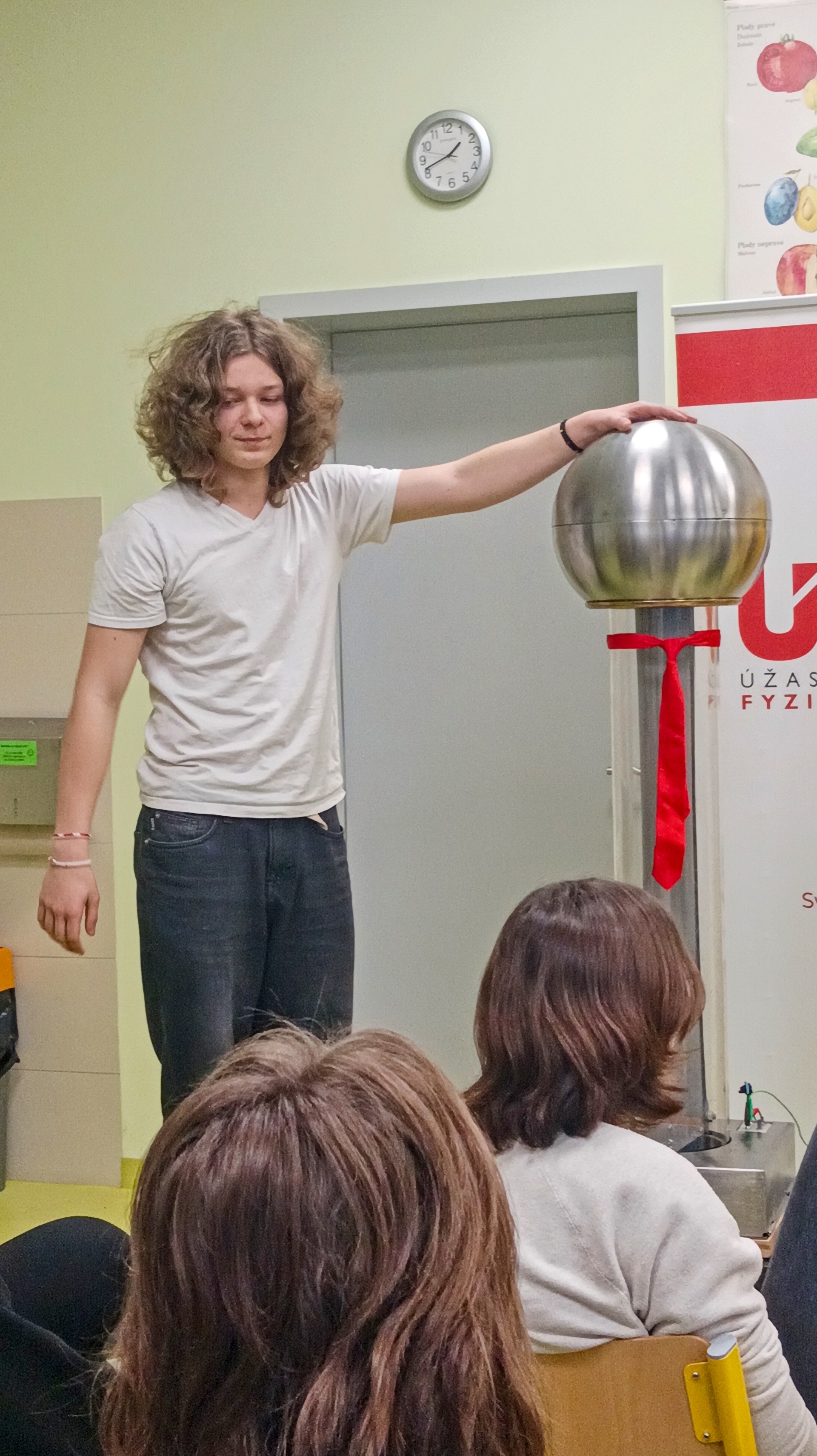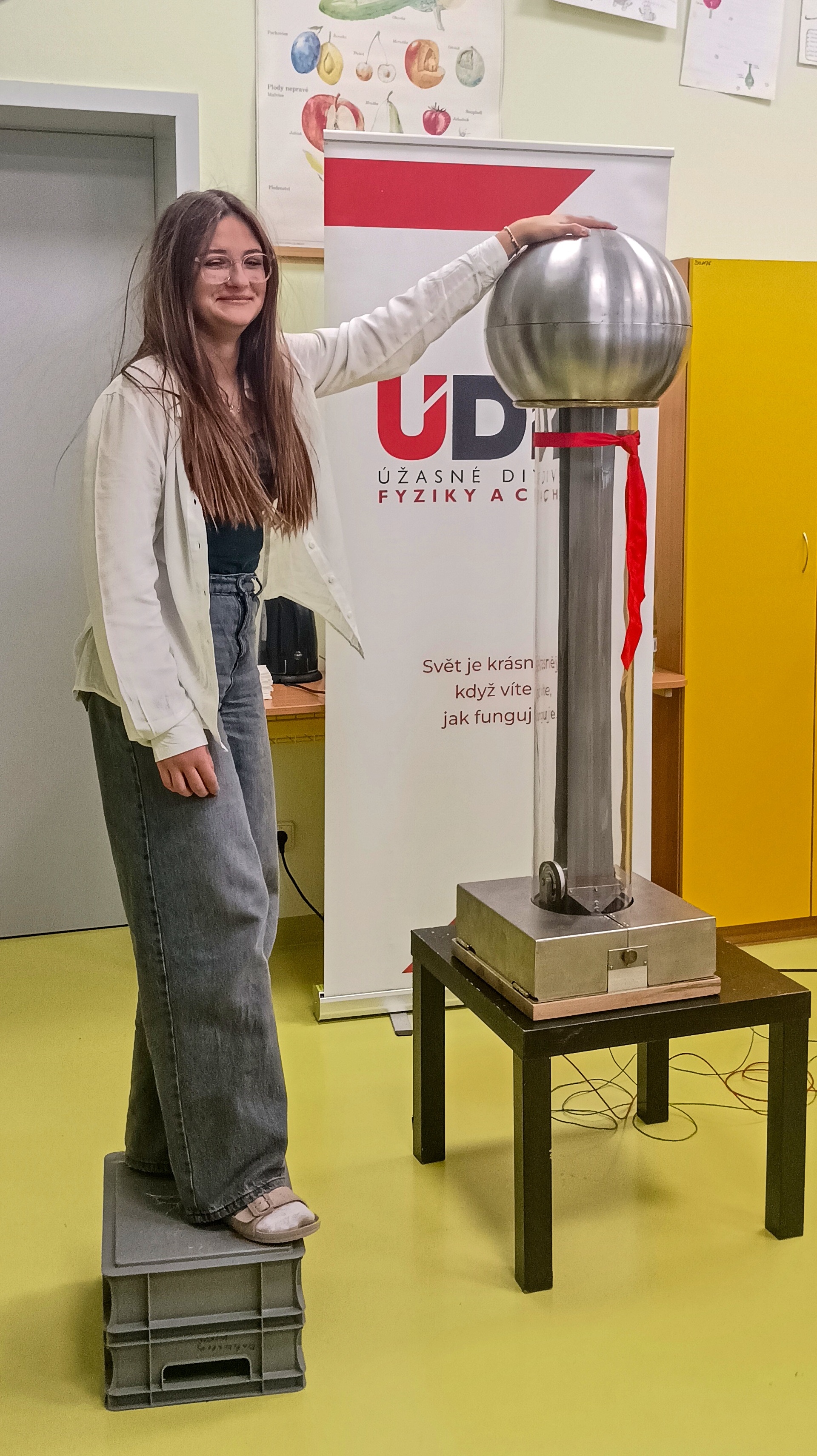 V pátek 21. listopadu se žáci osmých a devátých ročníků zúčastnili představení divadla ÚDiF. Tedy úžasného divadla fyziky a chemie. Deváťáci absolvovali představení s názvem Pod proudem, které bylo naplněno elektrickými experimenty od objevu statické elektřiny a pokusů s Van de Graaffovým generátorem, přes první baterie Alessandra Volty a první žárovku Humphry Davyho až po pokusy Michaela Faradaye, kterými svázal elektřinu a magnety. Osmáci shlédli představení nazvané O ničem, ve kterém byli svědky různých experimentů s vývěvou. Zjistili, co dokáže podtlak a vakuum a také tlak naší atmosféry. Do některých experimentů se děti mohly přímo zapojit, čehož naši žáci hojně a s nadšením využívali. Doufám, že se dětem představení líbilo a pomohlo jim lépe pochopit, jak fyzika ovlivňuje náš každodenní život, a že platí heslo „Svět je krásnější, když víte, jak funguje.“