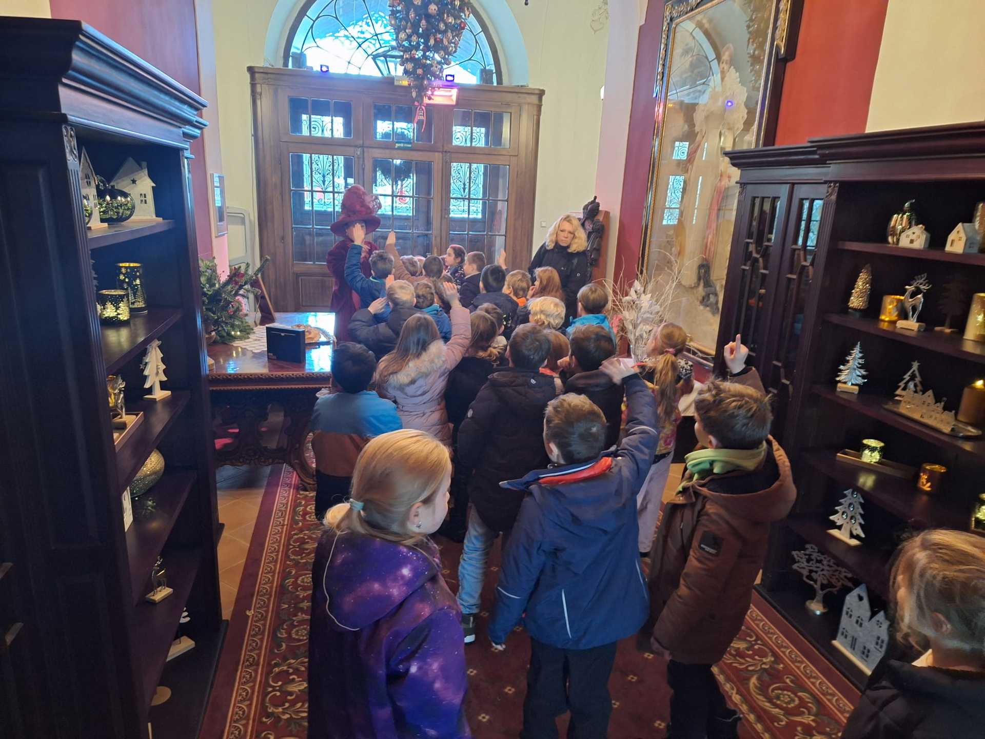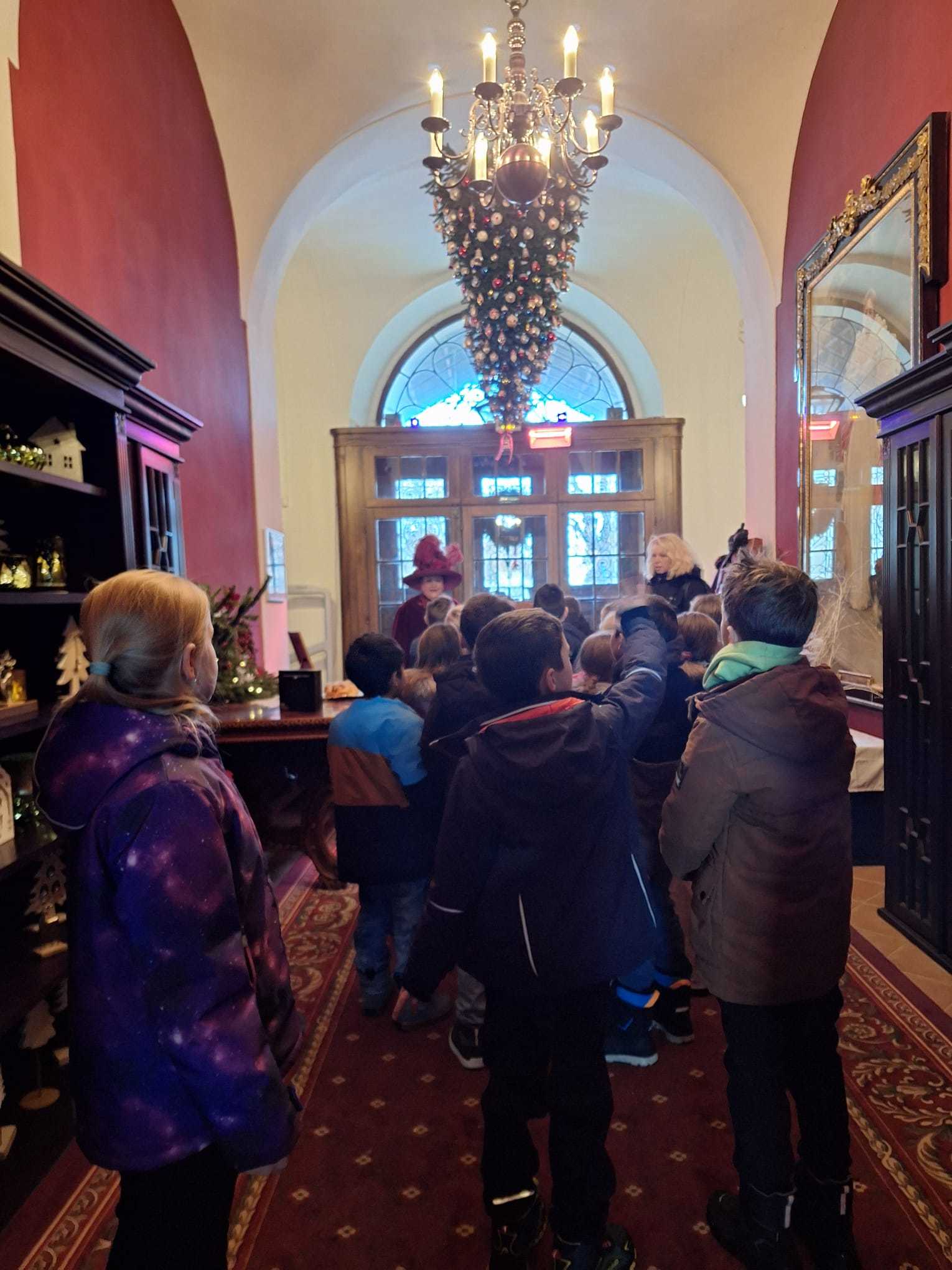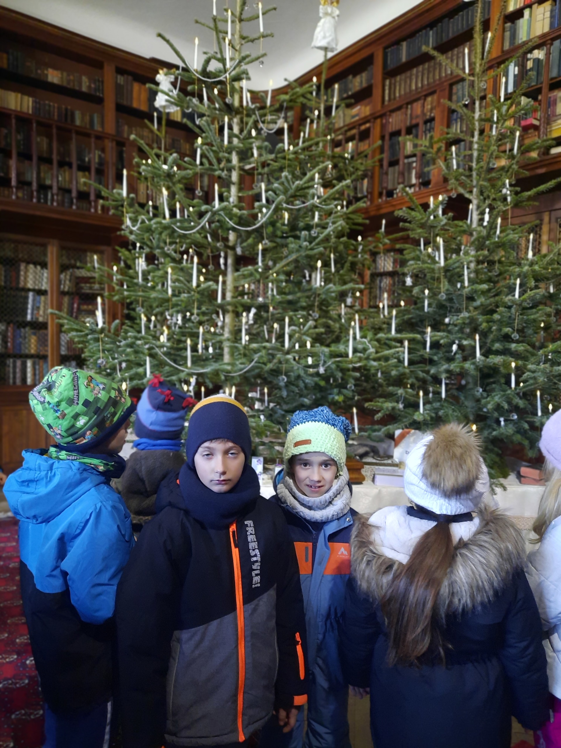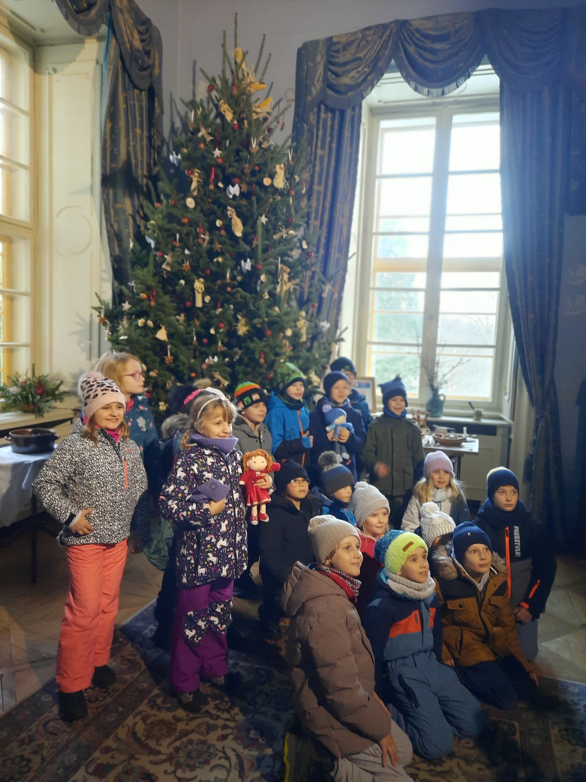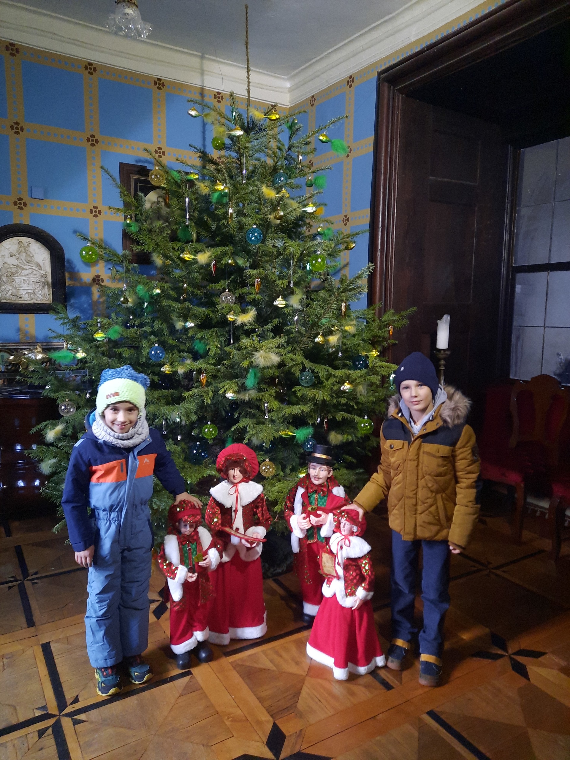 Na zámku byl pro nás připravený program ,,Příběh vánočního stromečku".Nejdříve jsme si s pani průvodkyní( v kostýmu kněžny) prošli pokoje zámku. V každém pokoji byl nazdobený stromeček ,pokaždé v jiném tématickém stylu. Viděli jsme hodně stromečků s pěkným a zajímavým příběhem. Po prohlídce pokojů jsme si nazdobili perníček,ke kterému jsme dostali čaj.