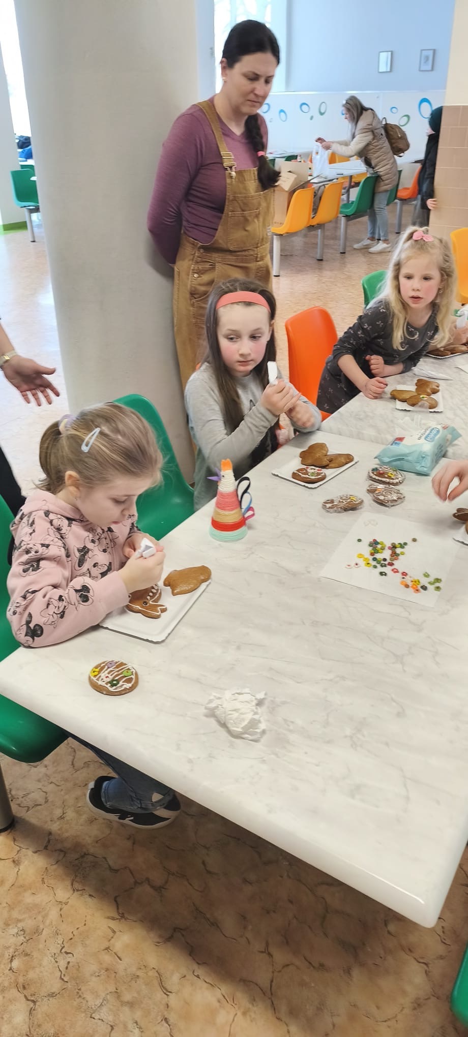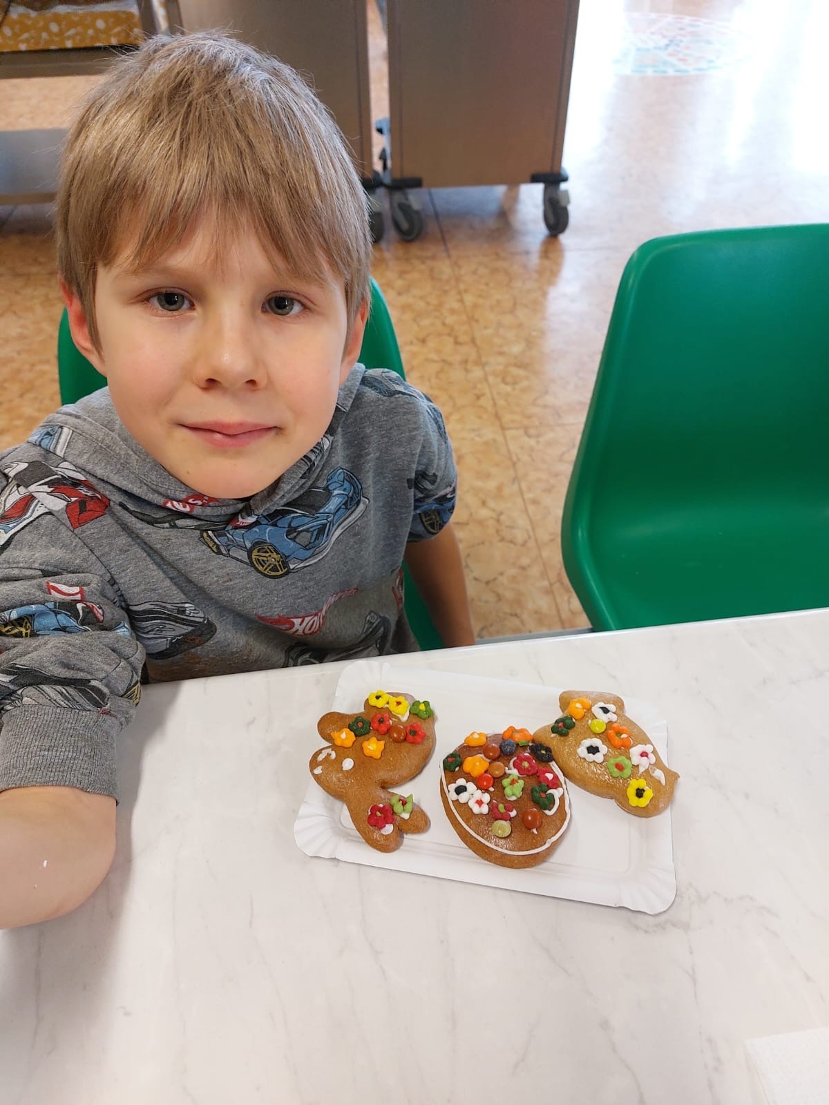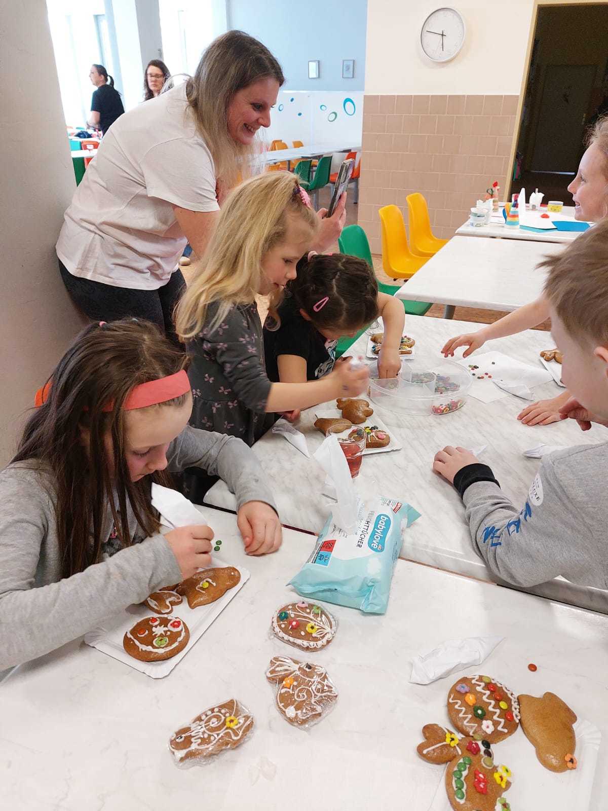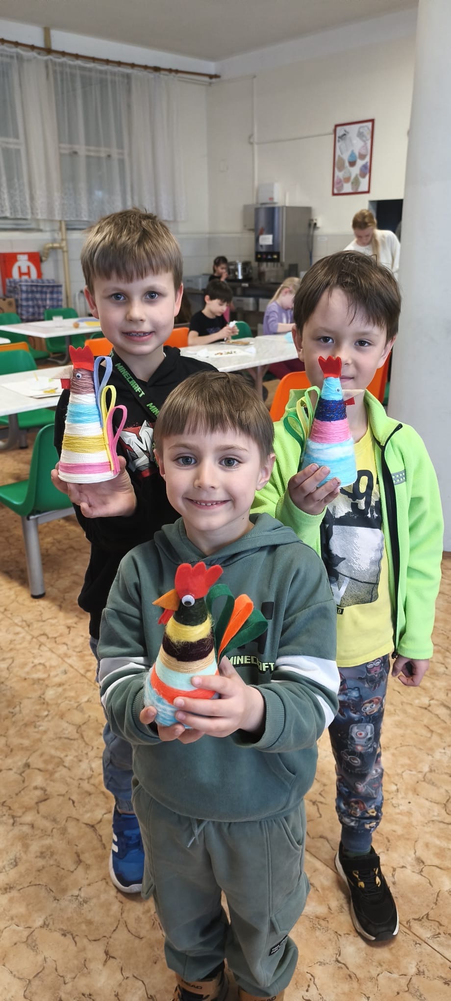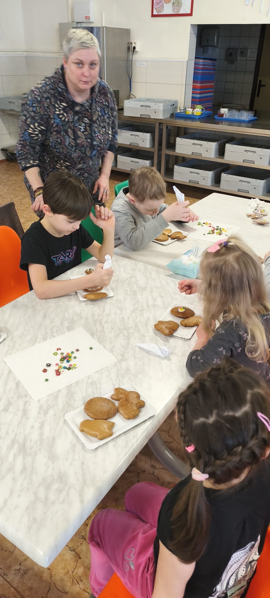 V úterý 31. 3., ještě před Velikonocemi, proběhly ve školní jídelně Velikonoční dílničky tříd 1. D a 1. C. Akci zorganizovaly paní vychovatelky Hanka Smolíková a Jana Řezáčová a děti si během dílniček ozdobily krásné velikonoční perníčky a také si vyrobily velikonočního kohoutka.