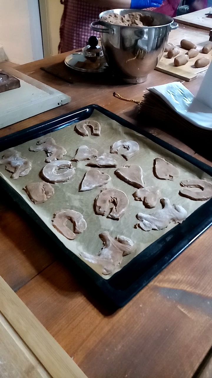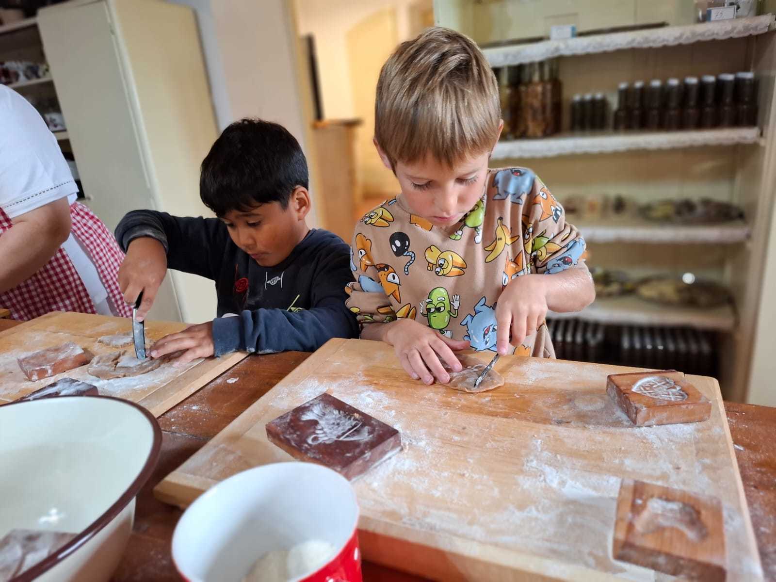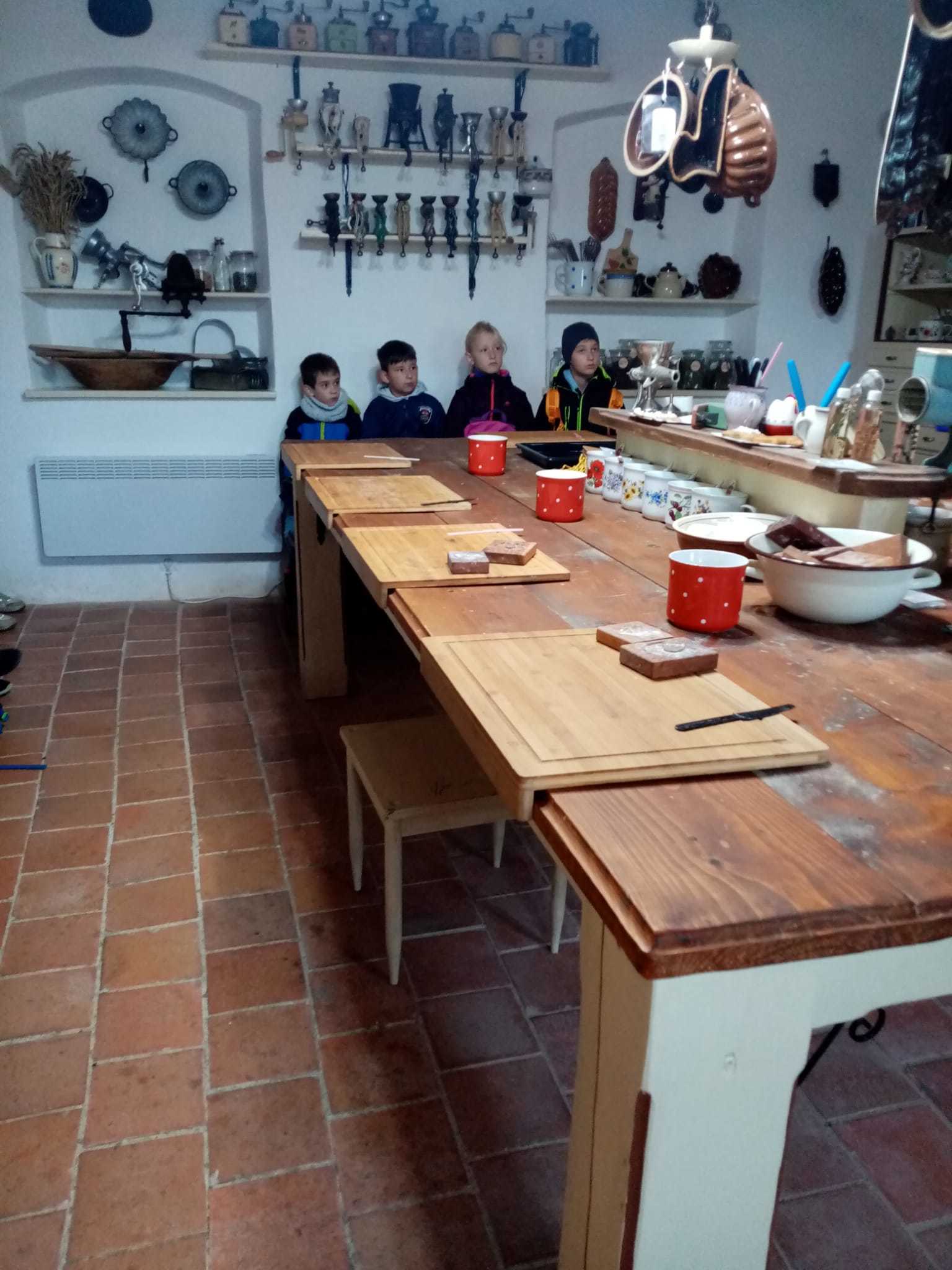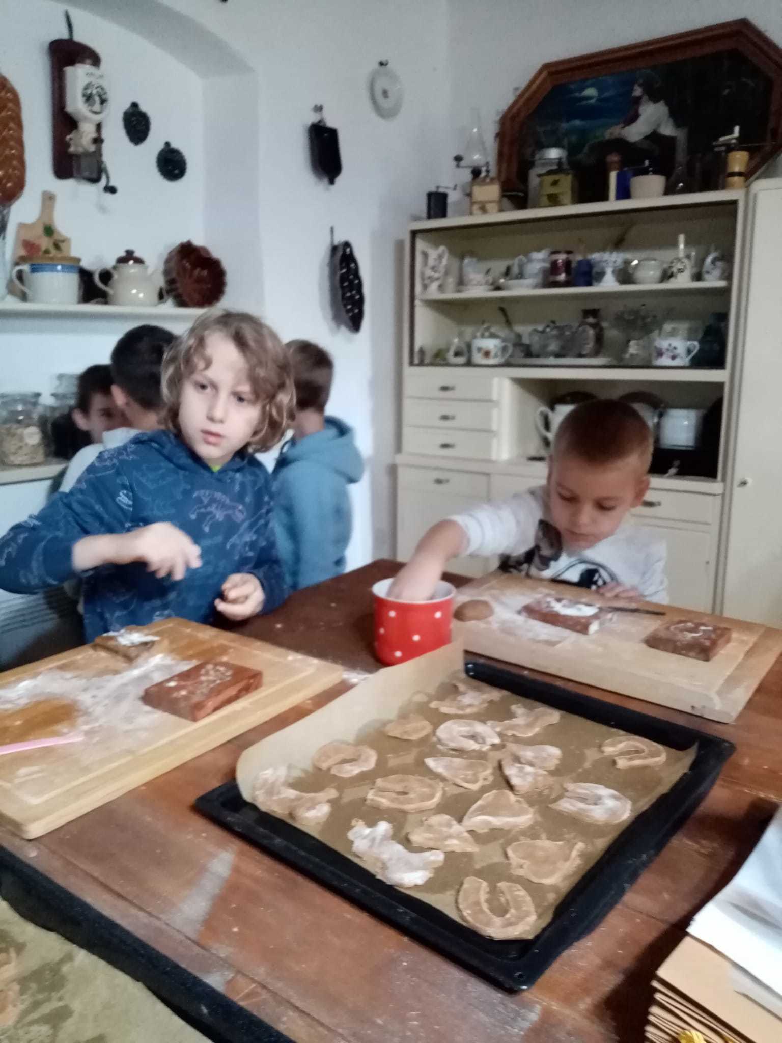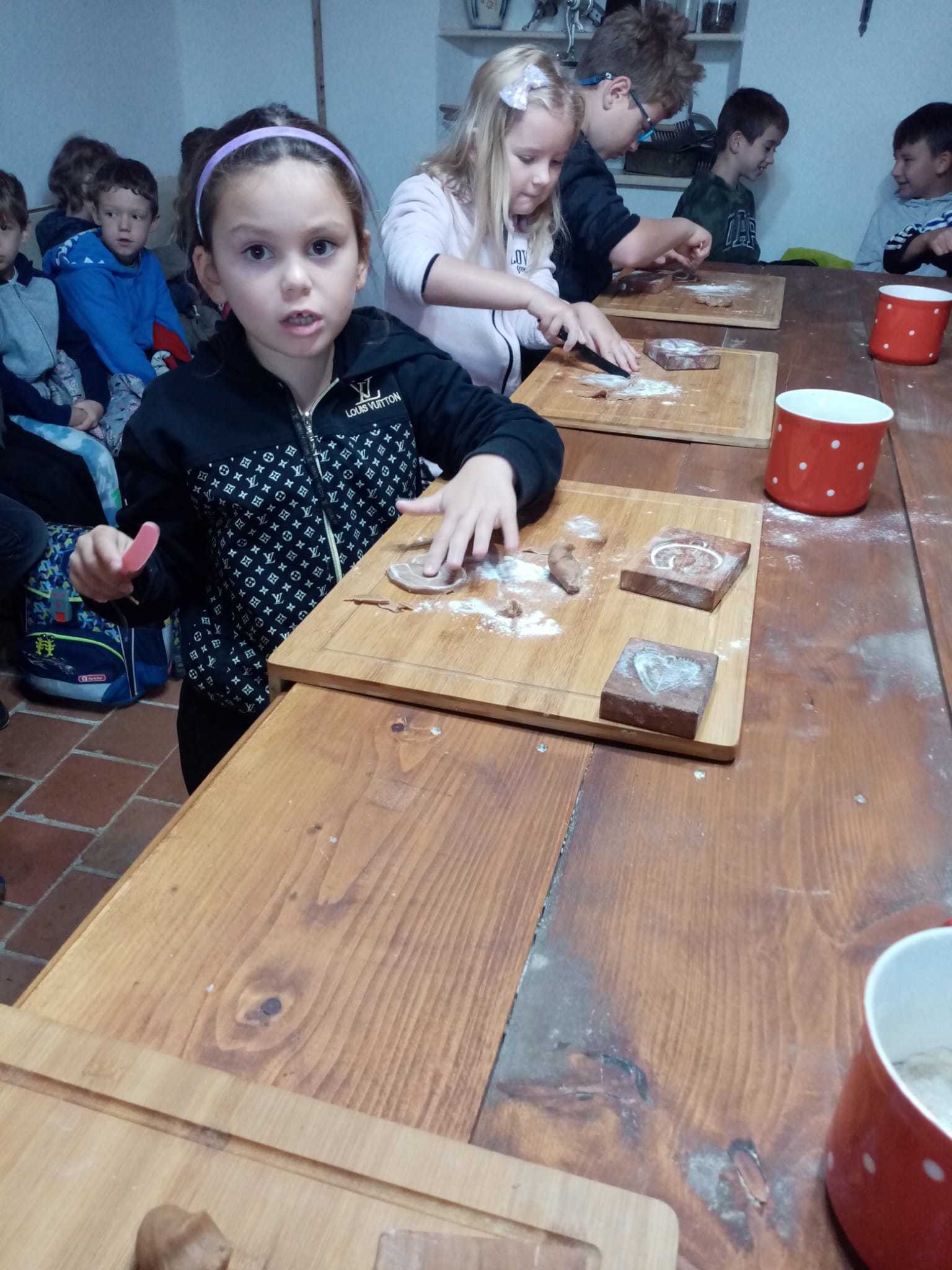 Poté se přesunuly do dílny perníkářské, kde si pomocí forem vytvořily perníčky z medového těsta.