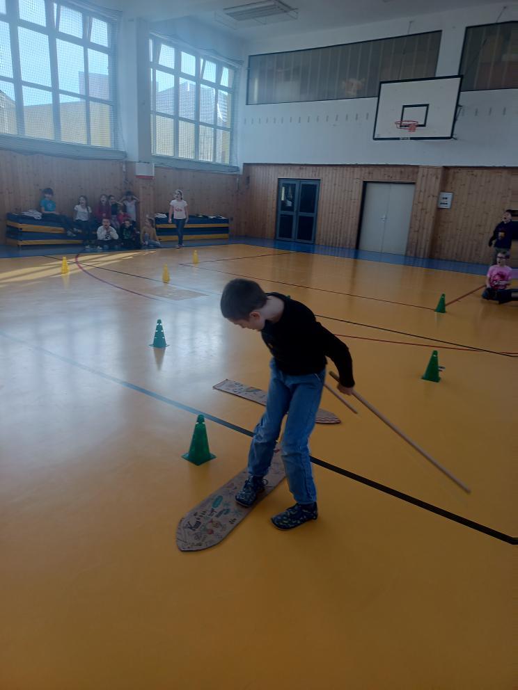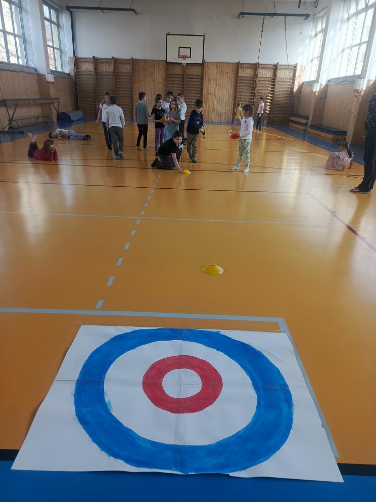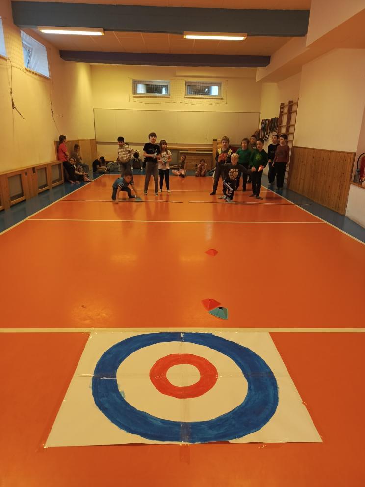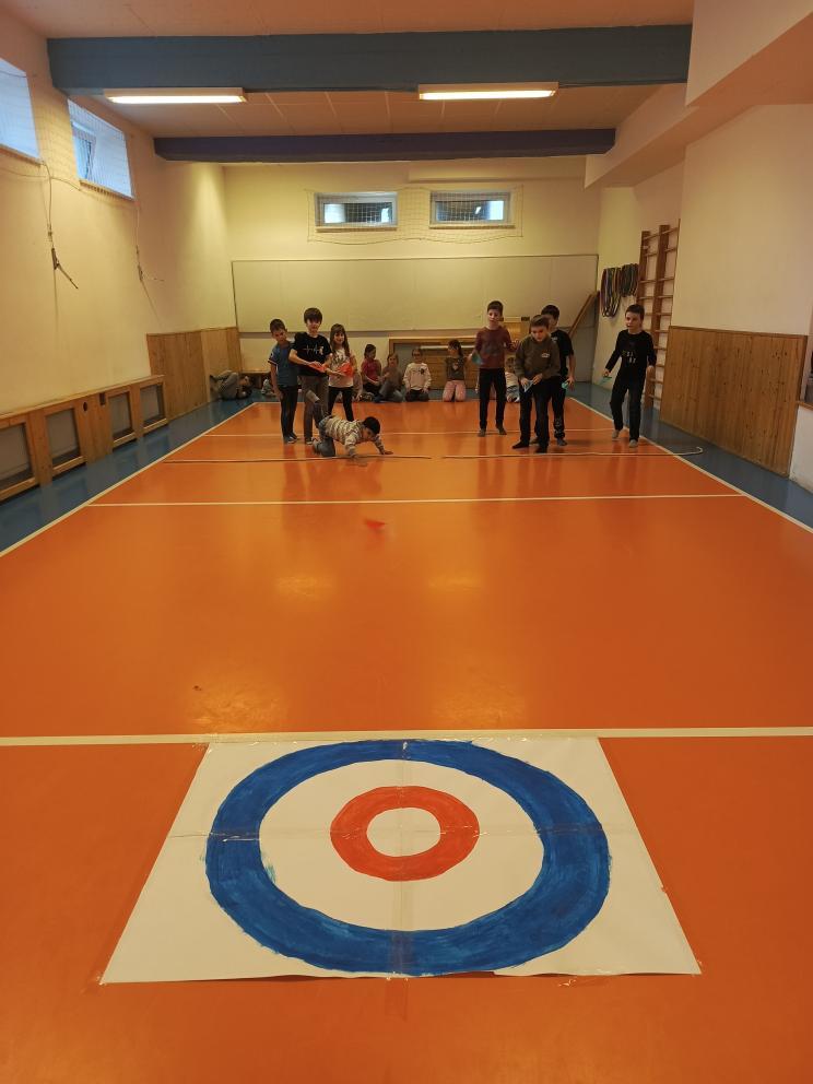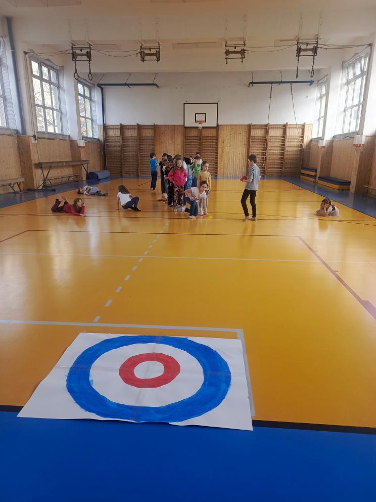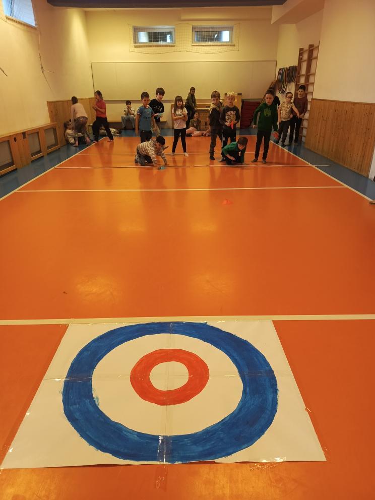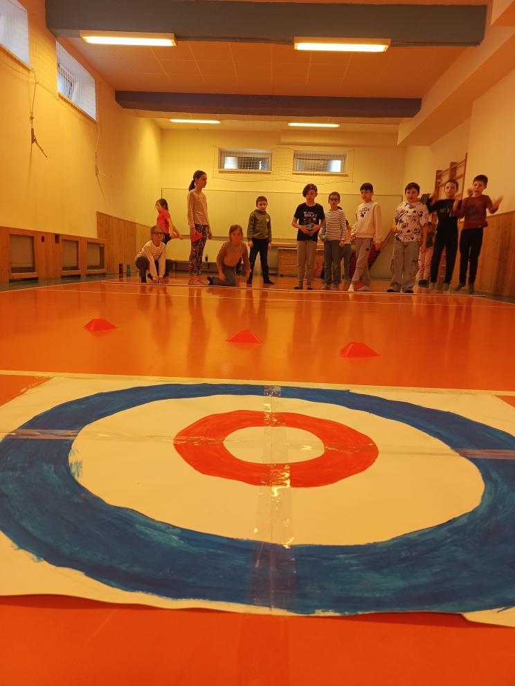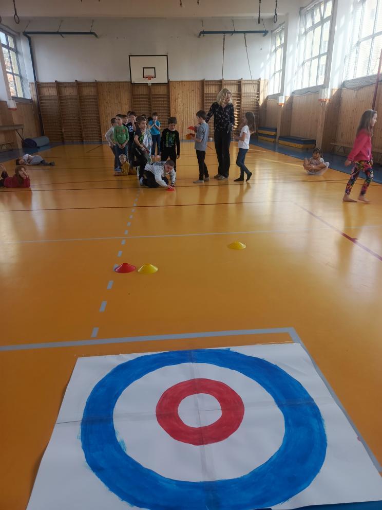 Jako první jsme si zkusili biatlon – děti si v družině vytvořily vlastní papírové lyže, na kterých pak musely objet připravenou dráhu a trefit (sestřelit) kužely. Poté následoval curling, který děti velmi bavil a opravdu jim šel. Jako poslední jsme si vyzkoušeli skeleton, u čehož byla velká zábava.
