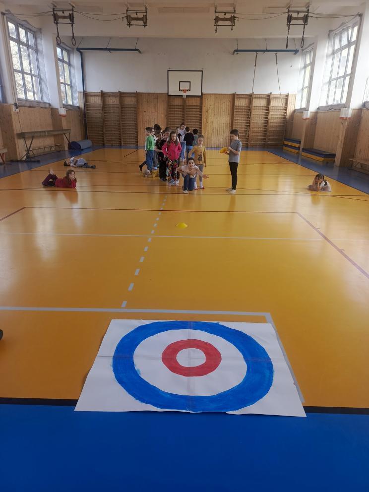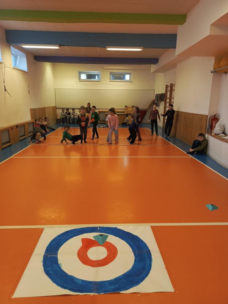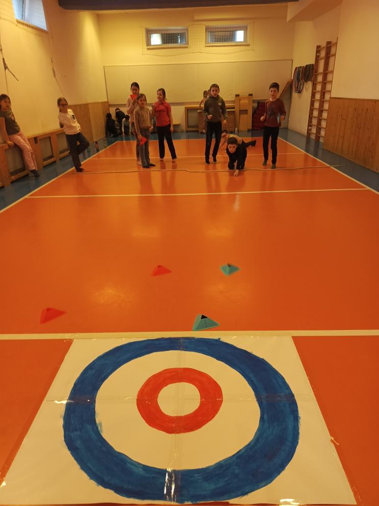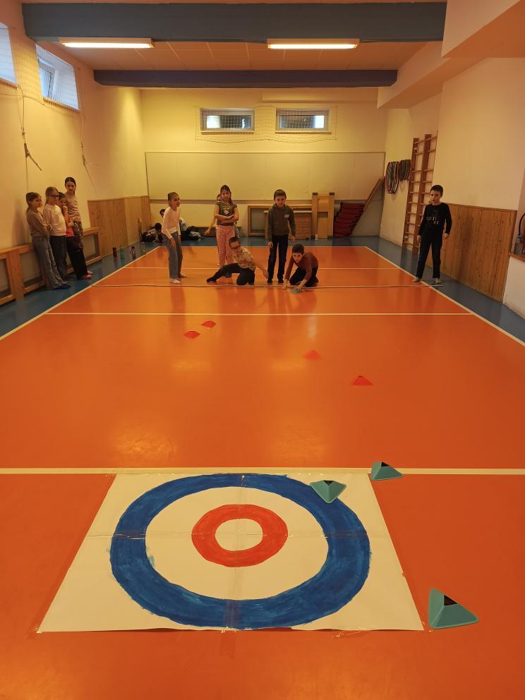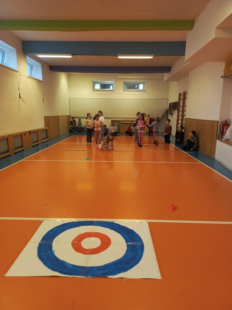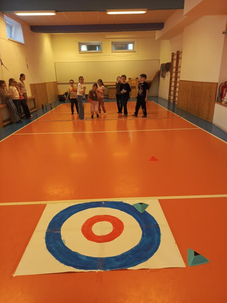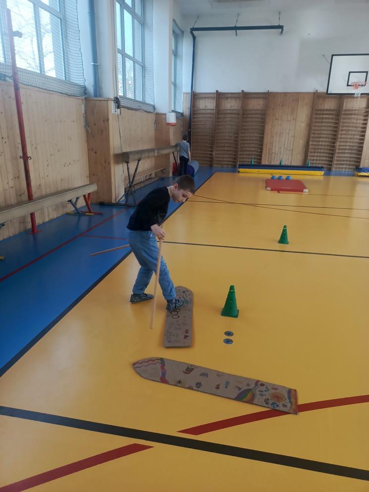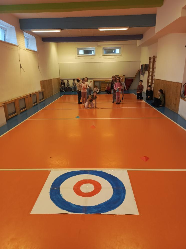 Jako první jsme si zkusili biatlon – děti si v družině vytvořily vlastní papírové lyže, na kterých pak musely objet připravenou dráhu a trefit (sestřelit) kužely. Poté následoval curling, který děti velmi bavil a opravdu jim šel. Jako poslední jsme si vyzkoušeli skeleton, u čehož byla velká zábava.