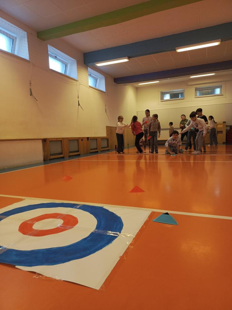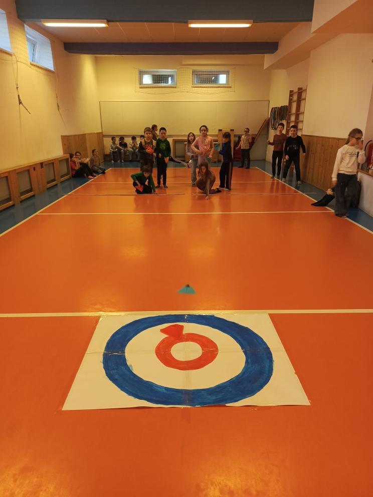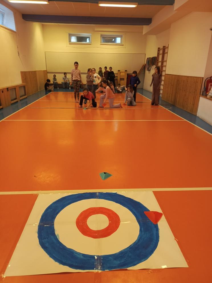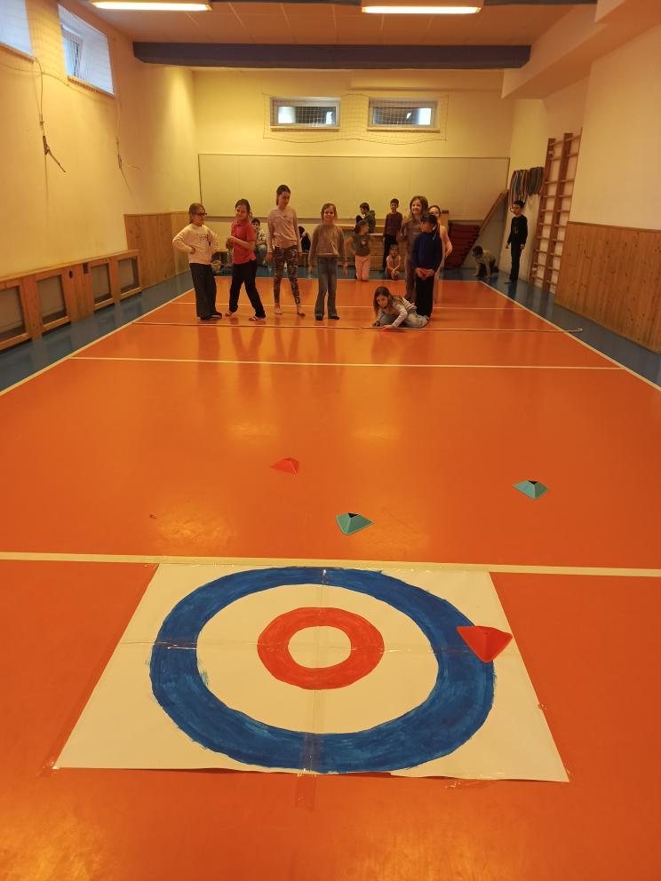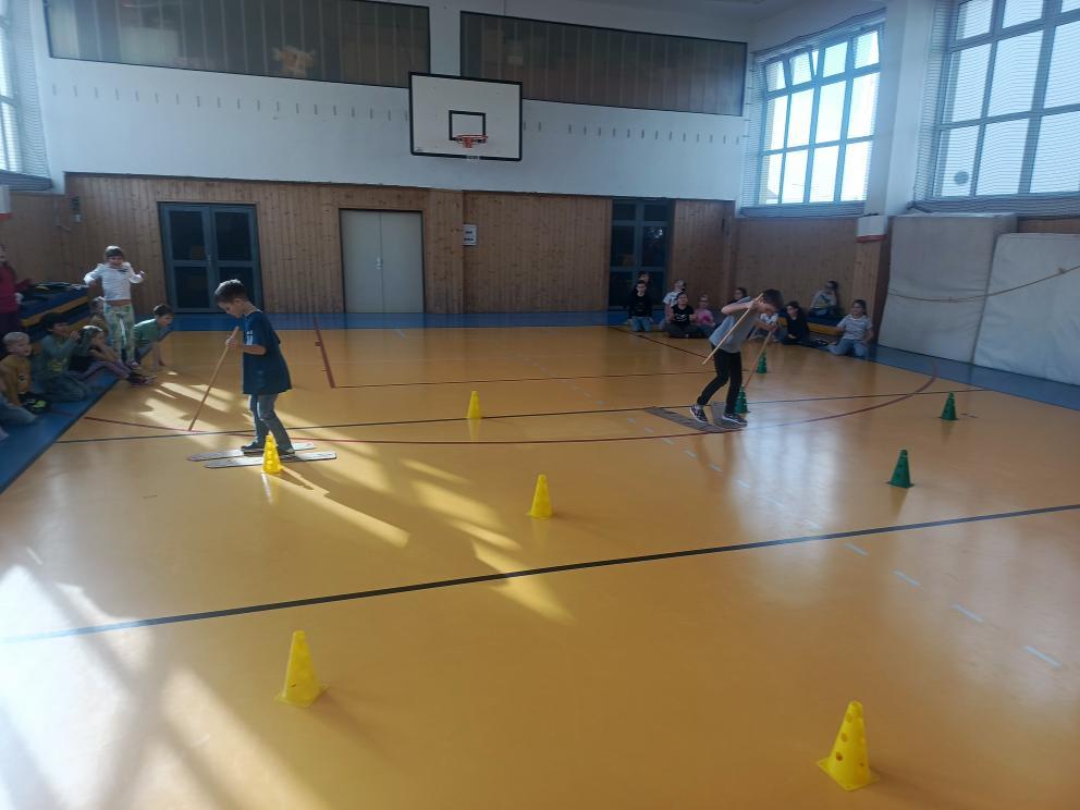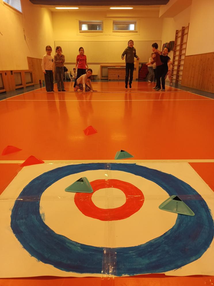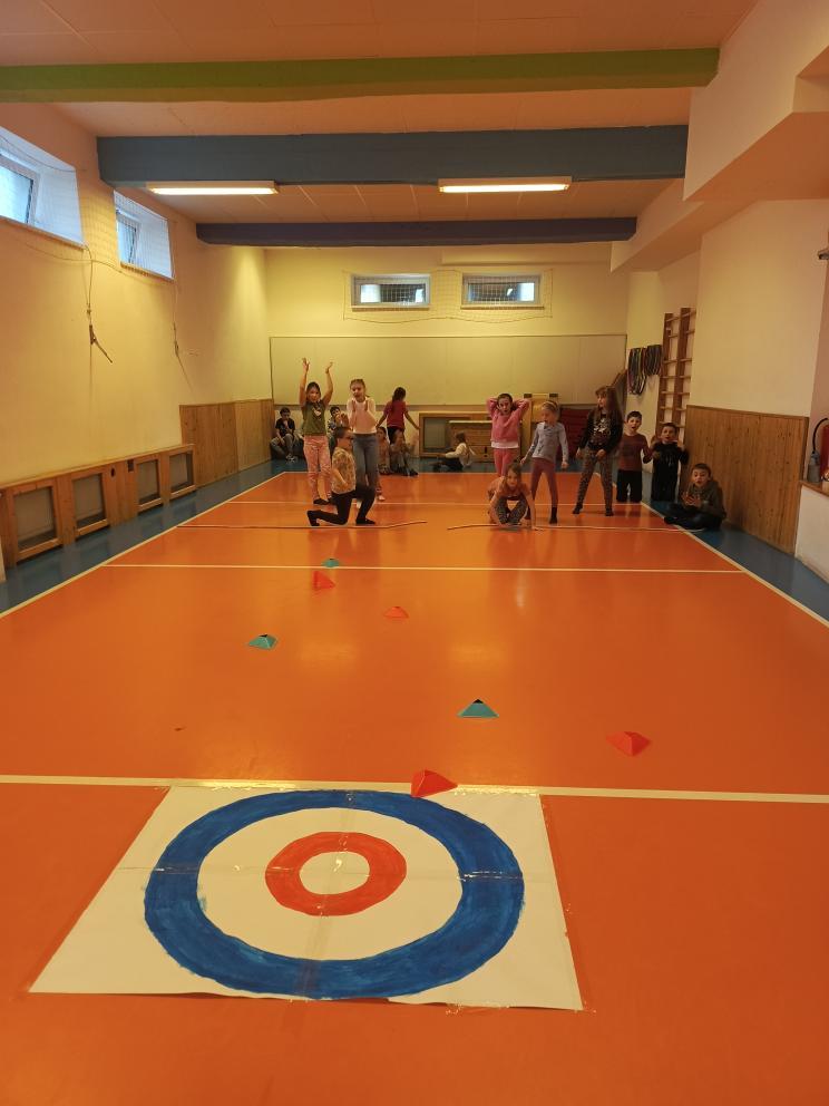 Jako první jsme si zkusili biatlon – děti si v družině vytvořily vlastní papírové lyže, na kterých pak musely objet připravenou dráhu a trefit (sestřelit) kužely. Poté následoval curling, který děti velmi bavil a opravdu jim šel. Jako poslední jsme si vyzkoušeli skeleton, u čehož byla velká zábava.