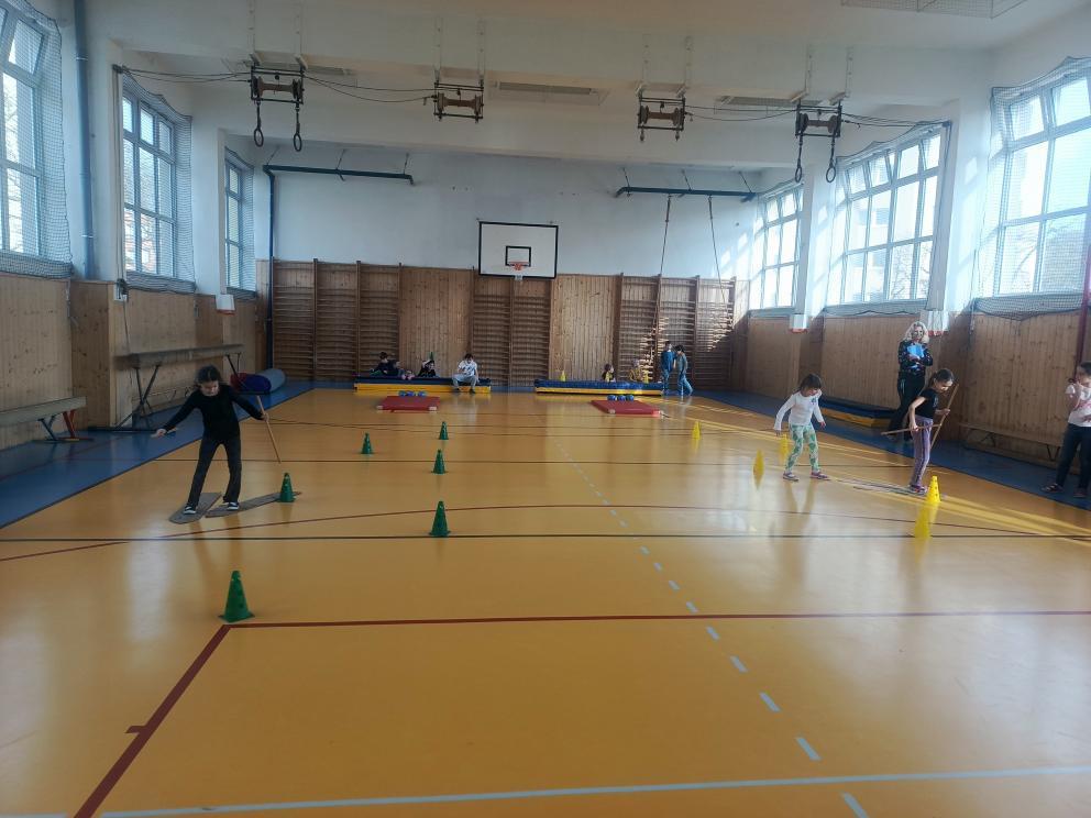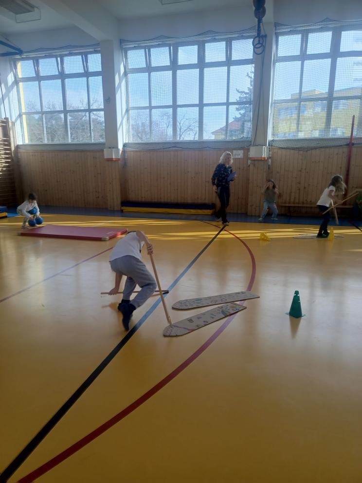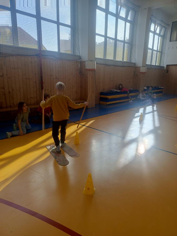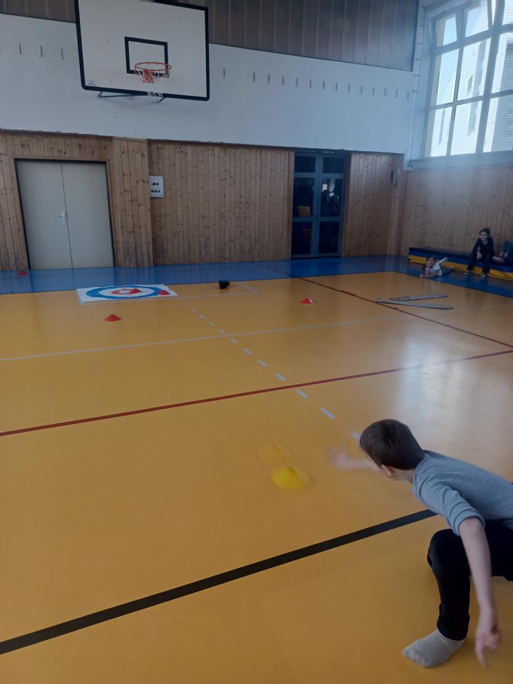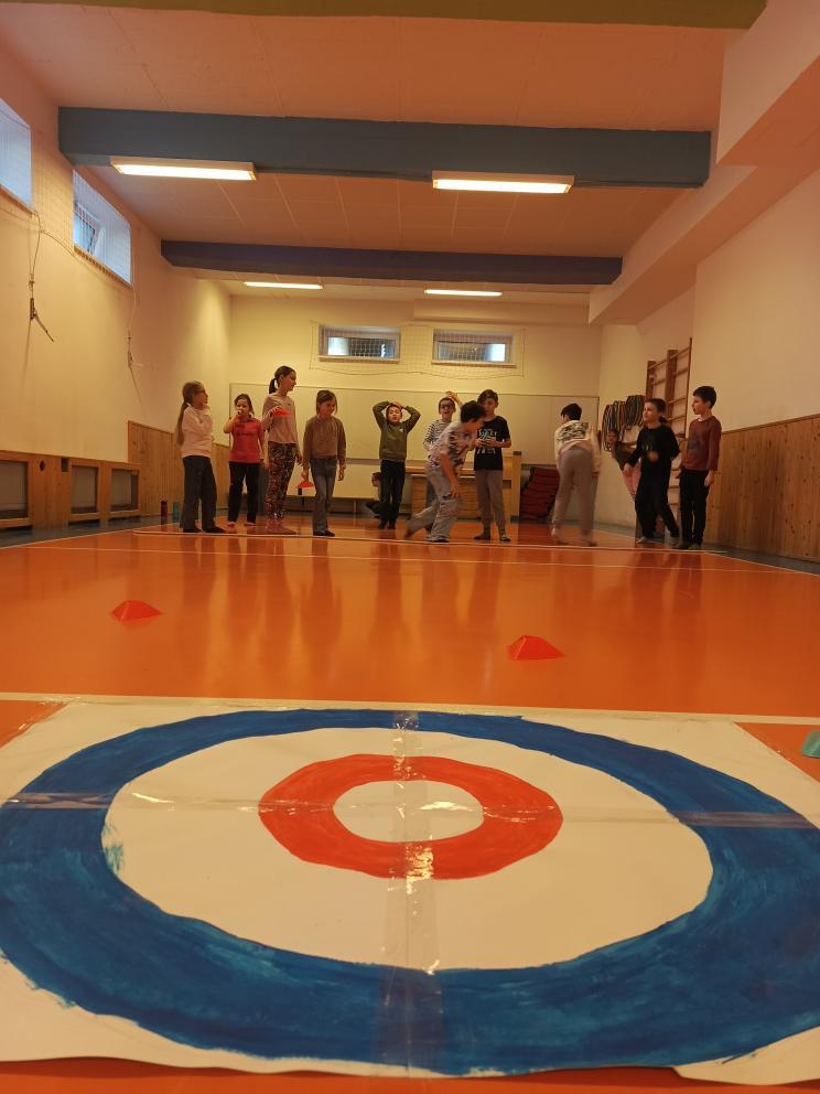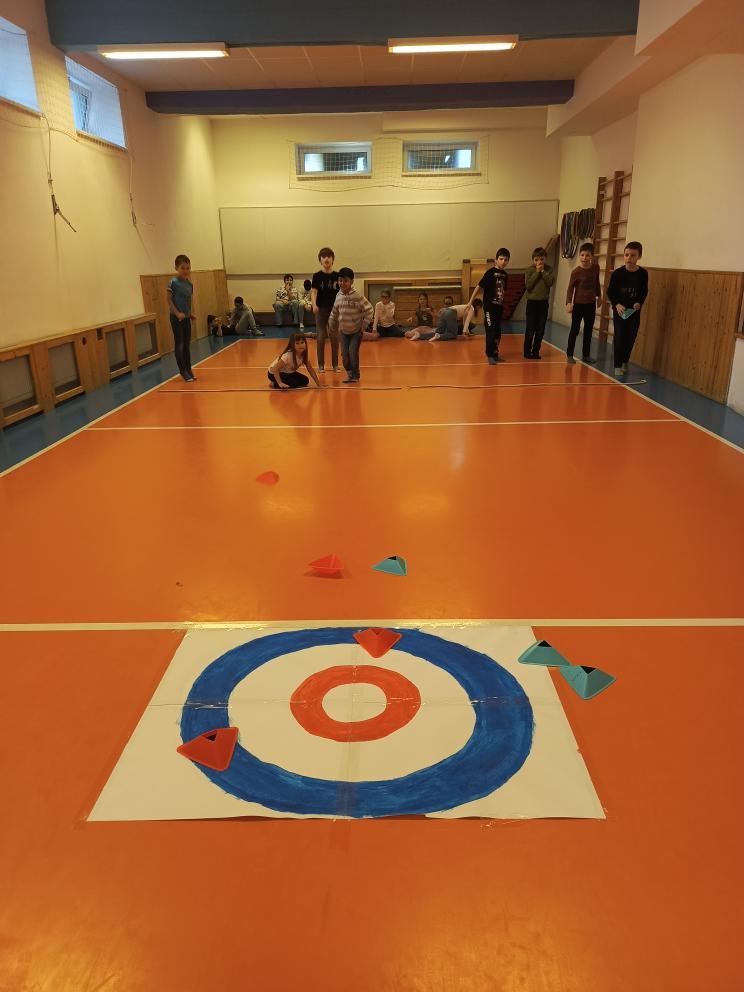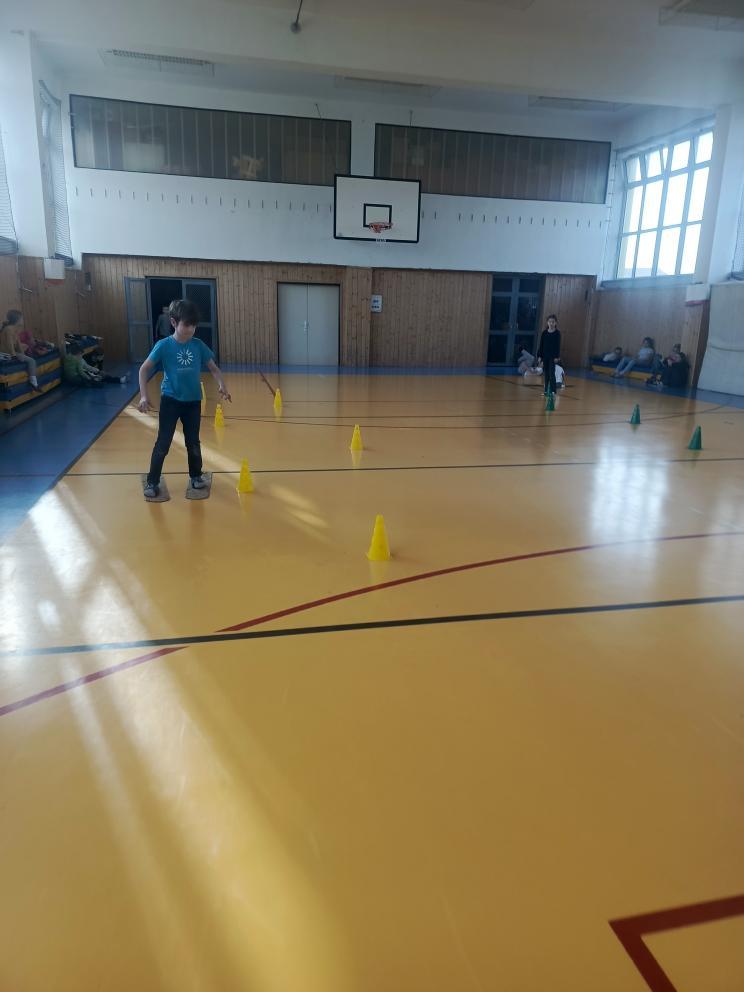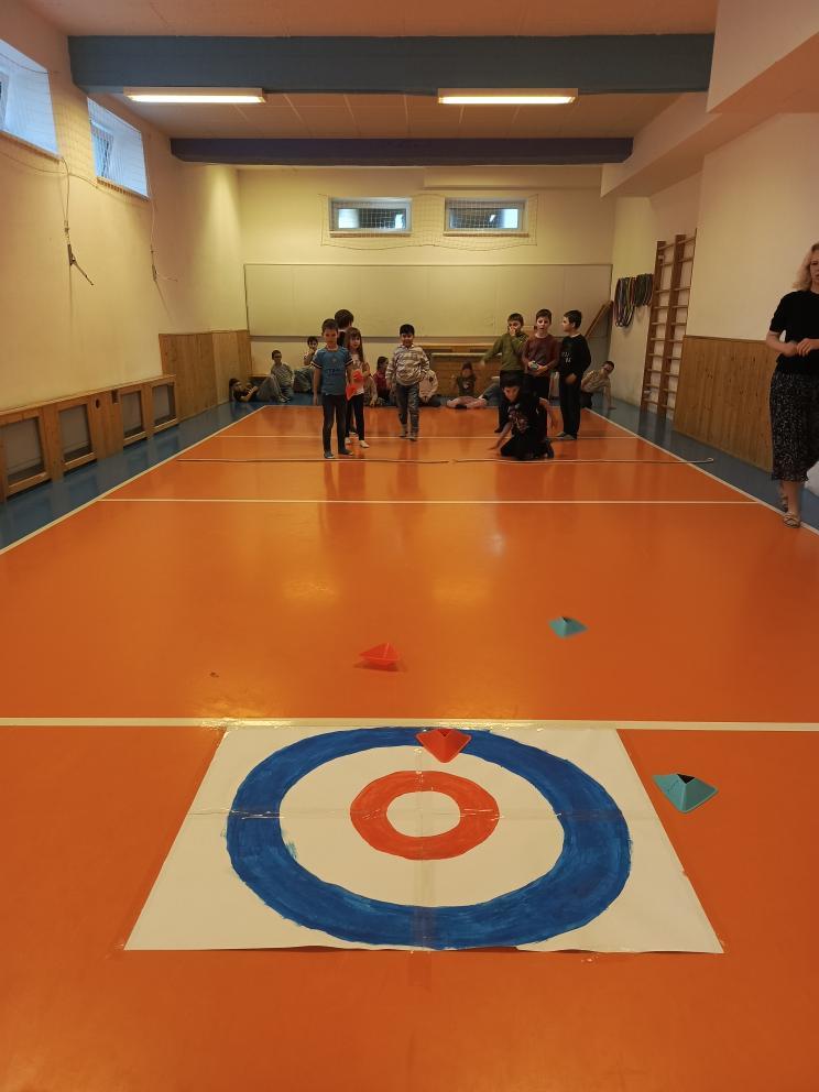Jako první jsme si zkusili biatlon – děti si v družině vytvořily vlastní papírové lyže, na kterých pak musely objet připravenou dráhu a trefit (sestřelit) kužely. Poté následoval curling, který děti velmi bavil a opravdu jim šel. Jako poslední jsme si vyzkoušeli skeleton, u čehož byla velká zábava.