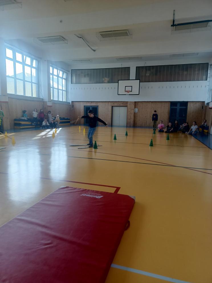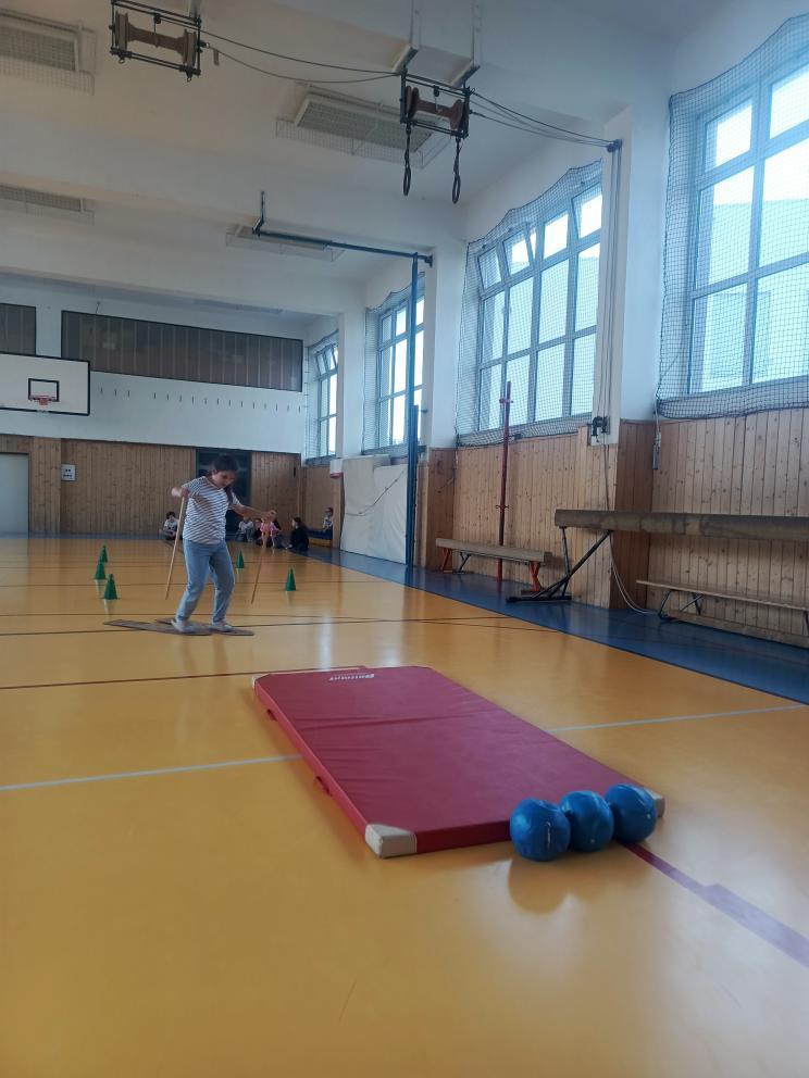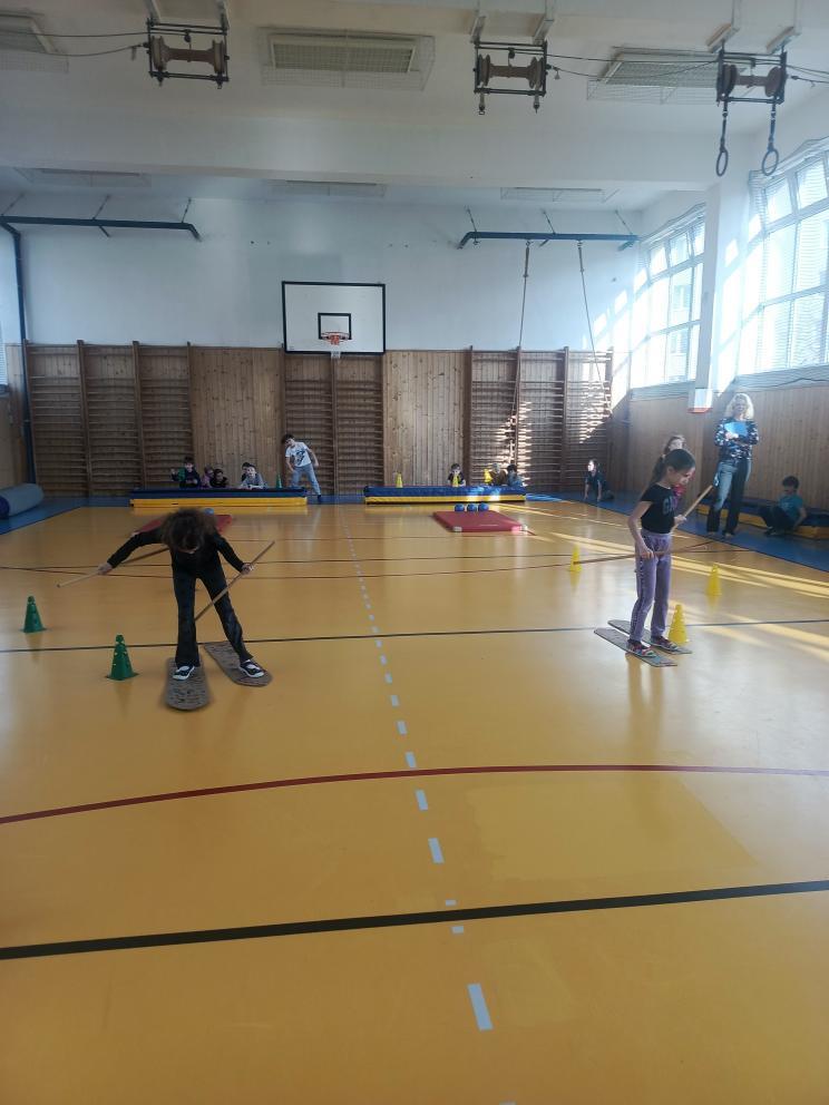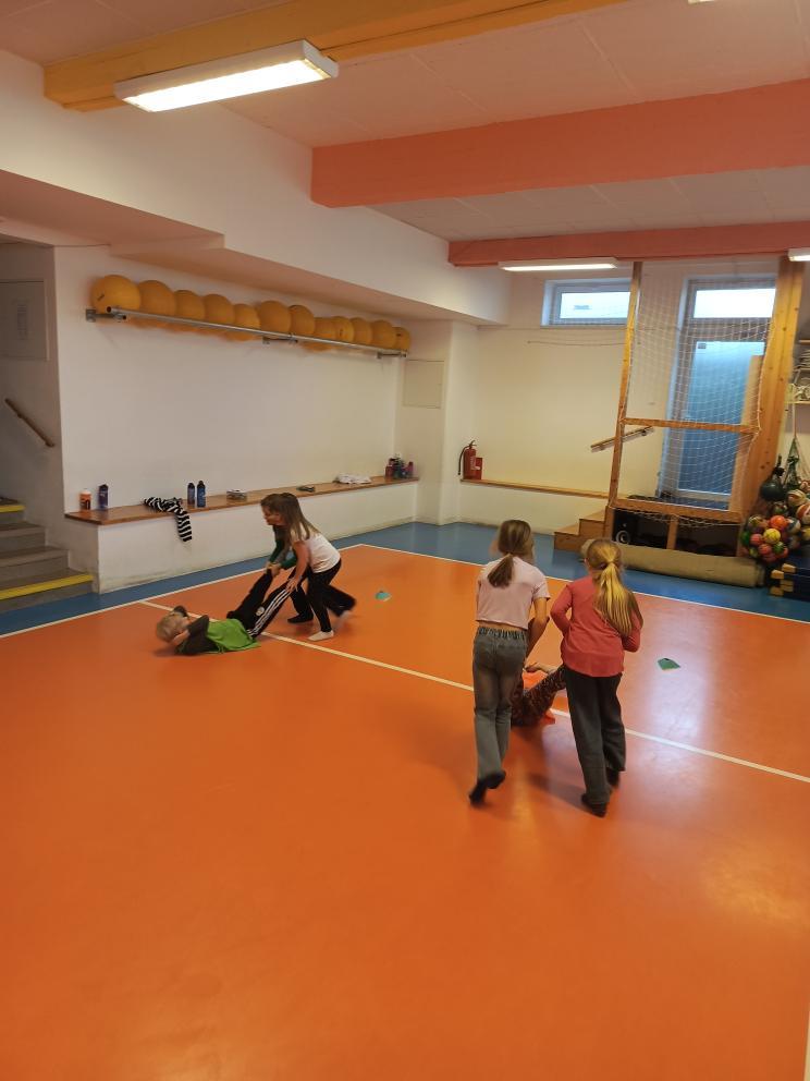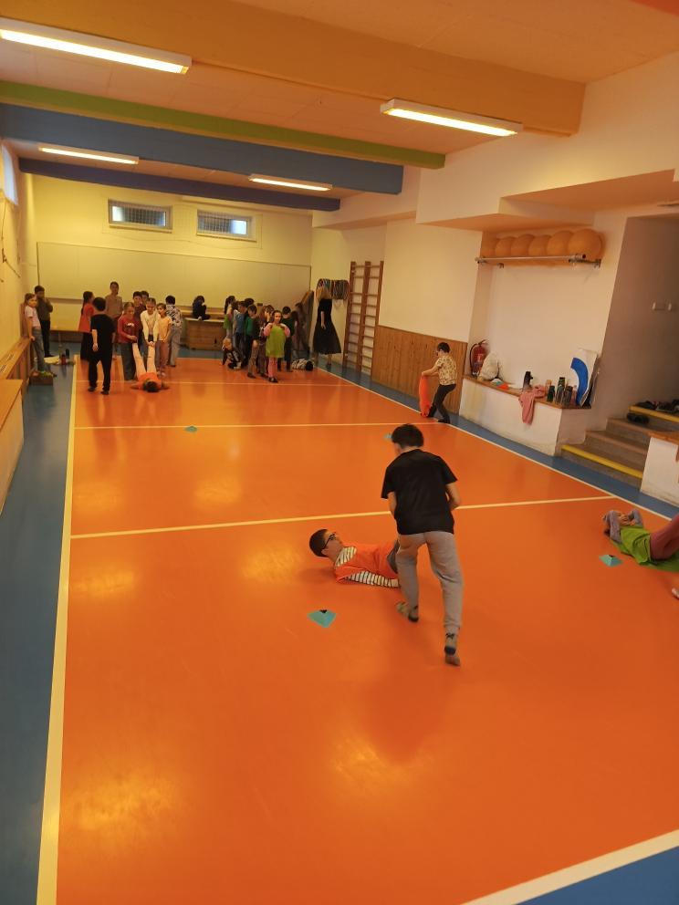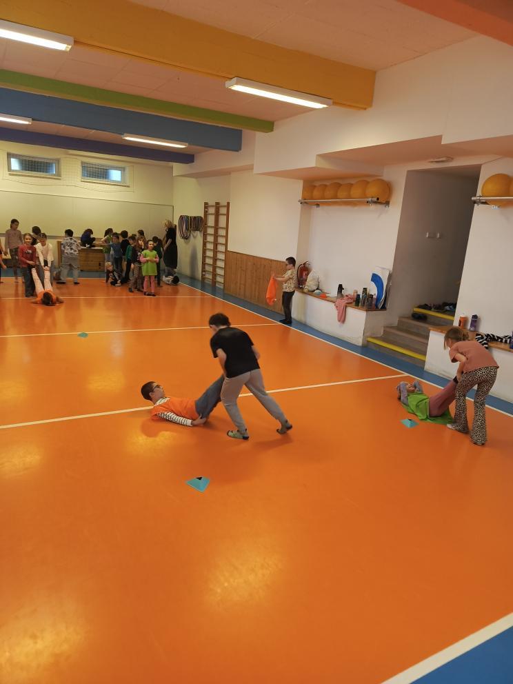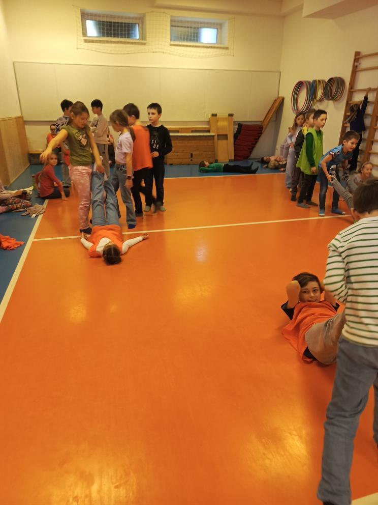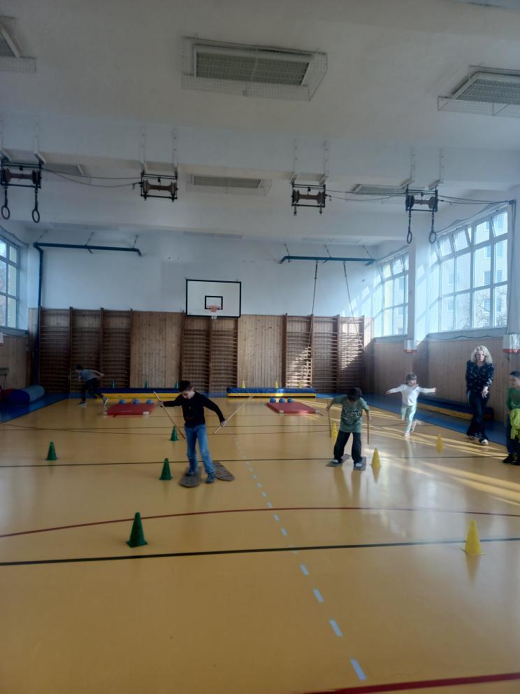 Jako první jsme si zkusili biatlon – děti si v družině vytvořily vlastní papírové lyže, na kterých pak musely objet připravenou dráhu a trefit (sestřelit) kužely. Poté následoval curling, který děti velmi bavil a opravdu jim šel. Jako poslední jsme si vyzkoušeli skeleton, u čehož byla velká zábava.