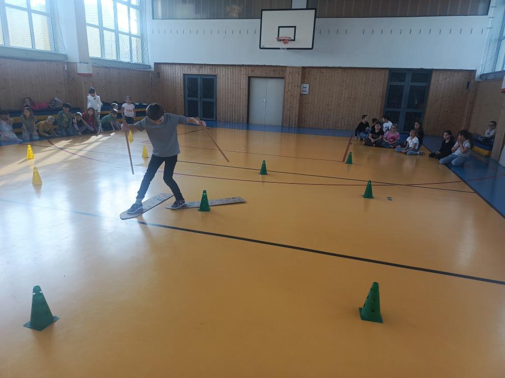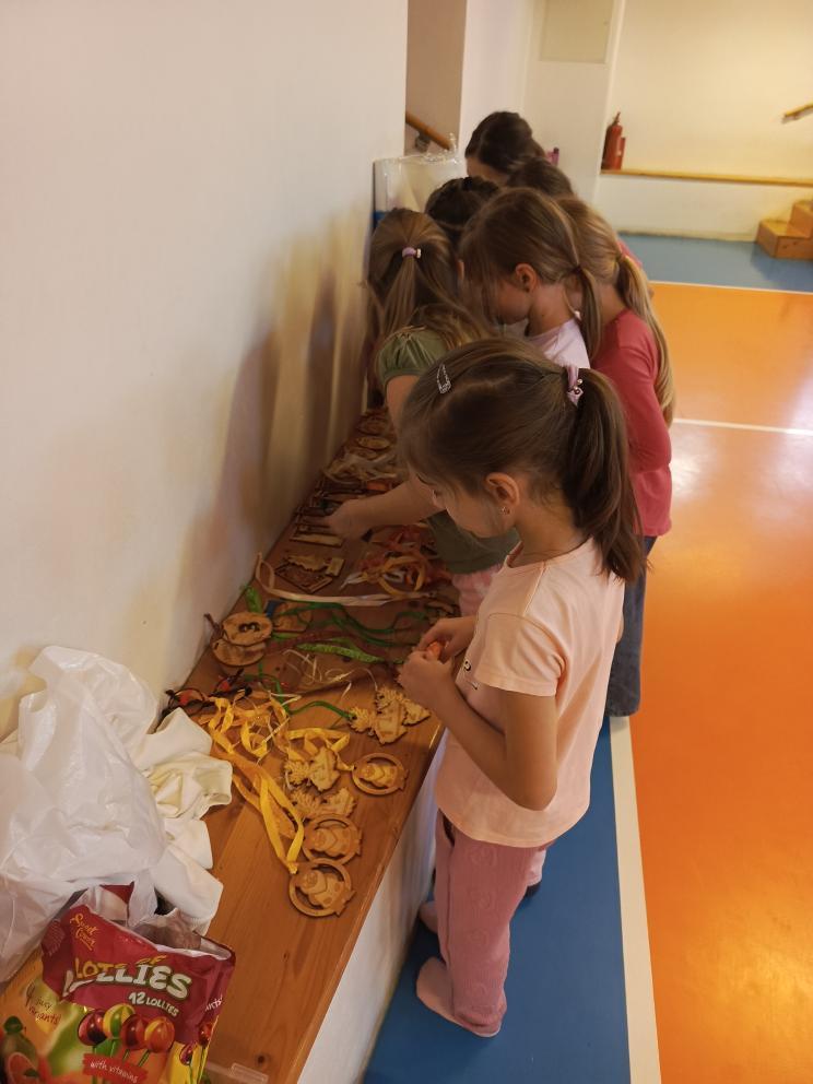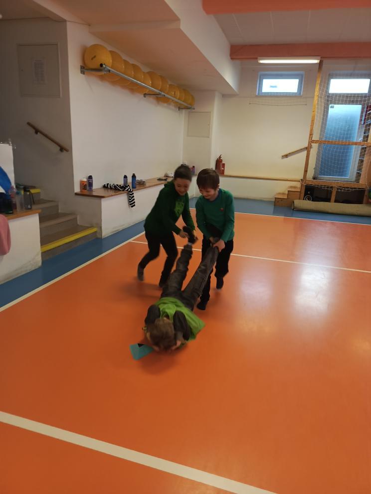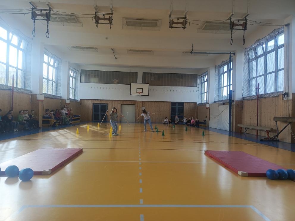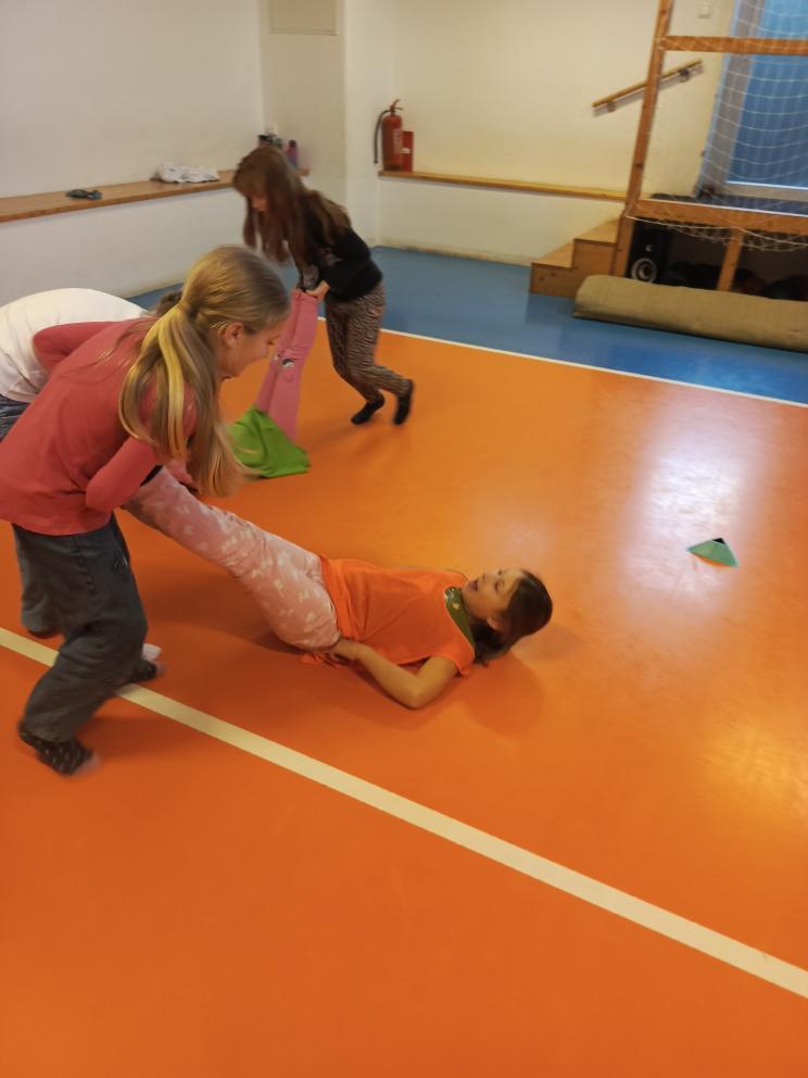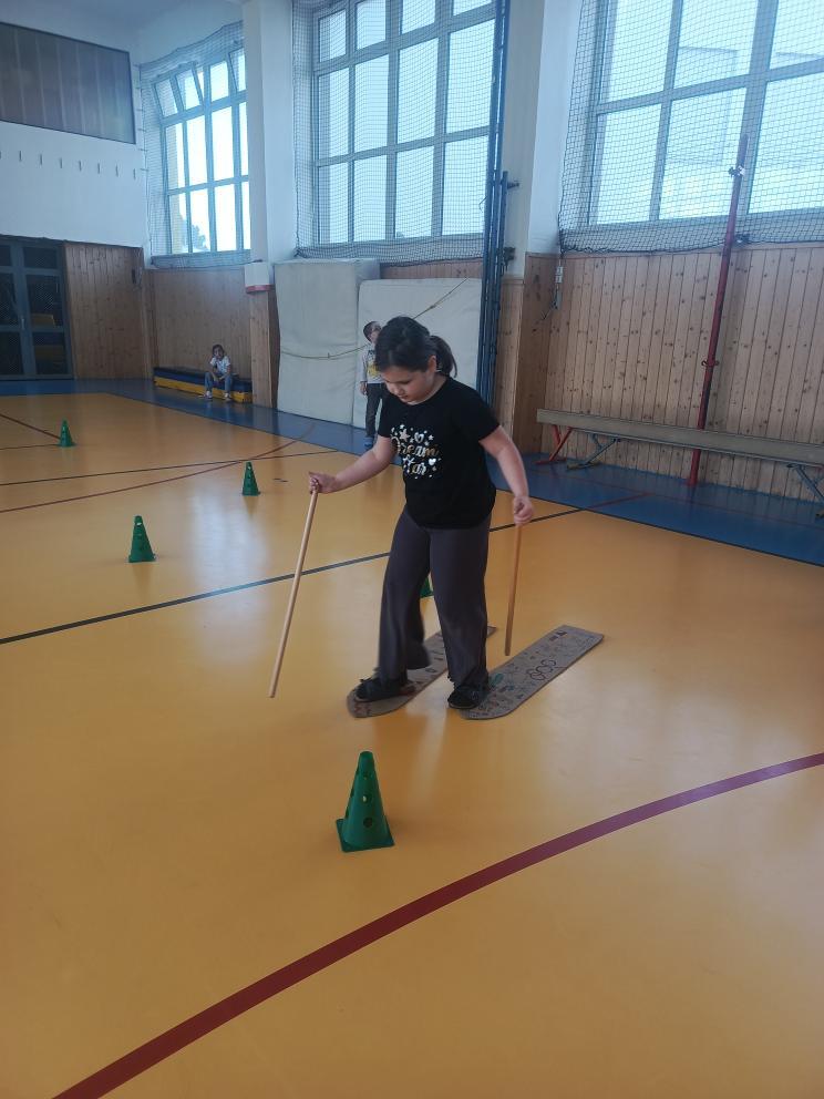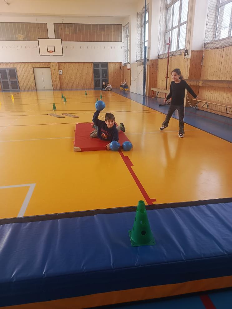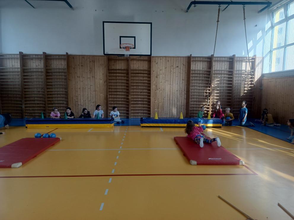 Jako první jsme si zkusili biatlon – děti si v družině vytvořily vlastní papírové lyže, na kterých pak musely objet připravenou dráhu a trefit (sestřelit) kužely. Poté následoval curling, který děti velmi bavil a opravdu jim šel. Jako poslední jsme si vyzkoušeli skeleton, u čehož byla velká zábava.